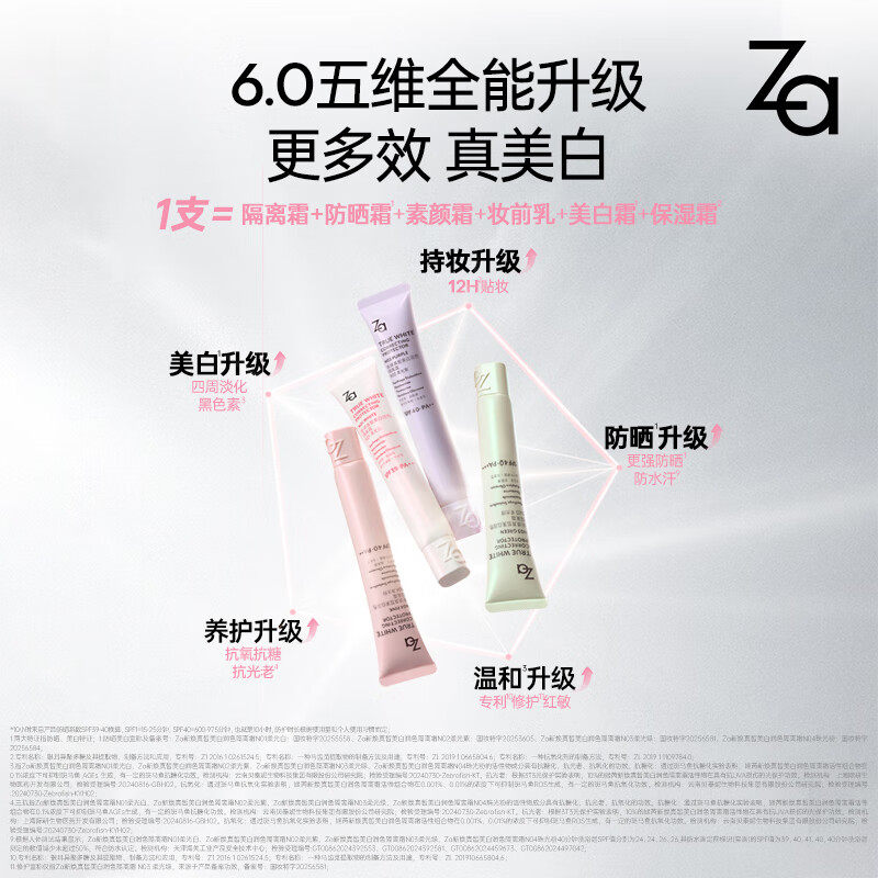 6.0升级Za姬芮美白防水防晒隔离霜妆前素颜霜修黄提亮祛斑敏肌
