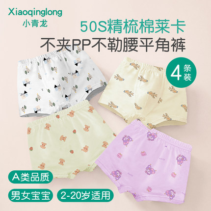 小青龙儿童内裤男童女童平角四角裤纯棉2-18岁宝宝卡通中大童短裤