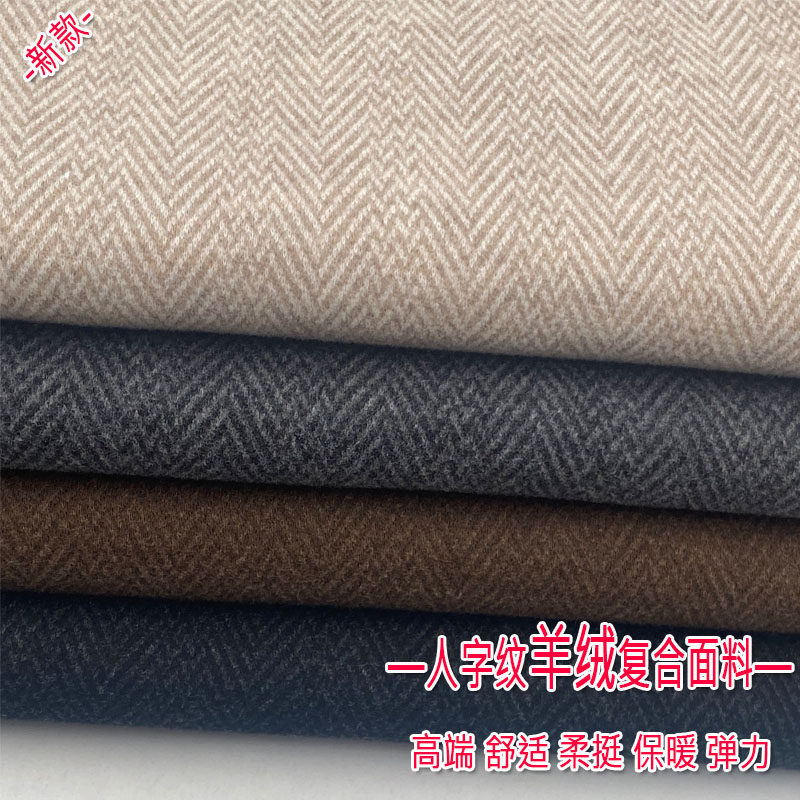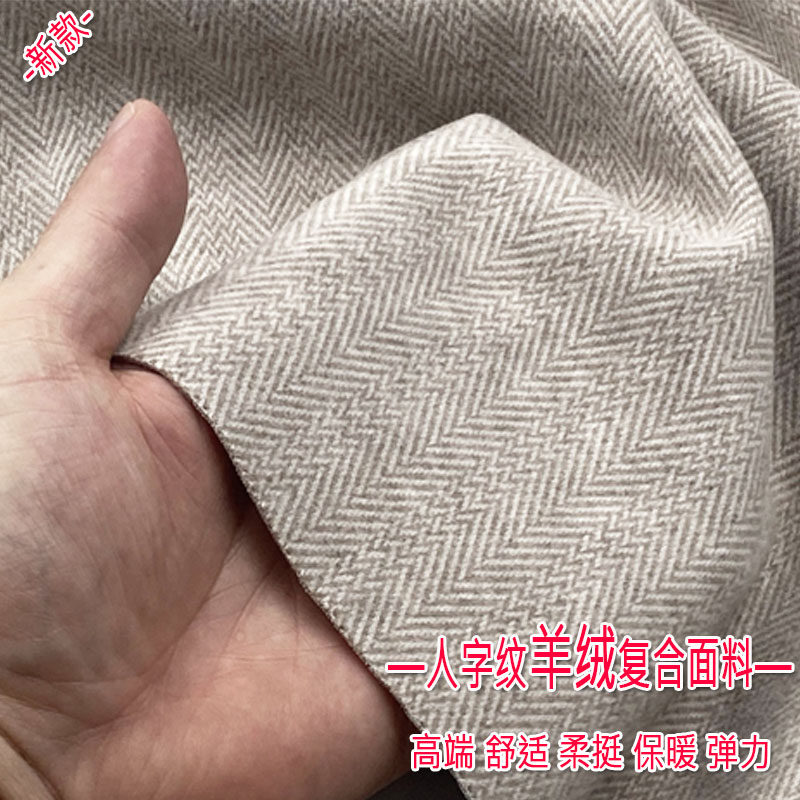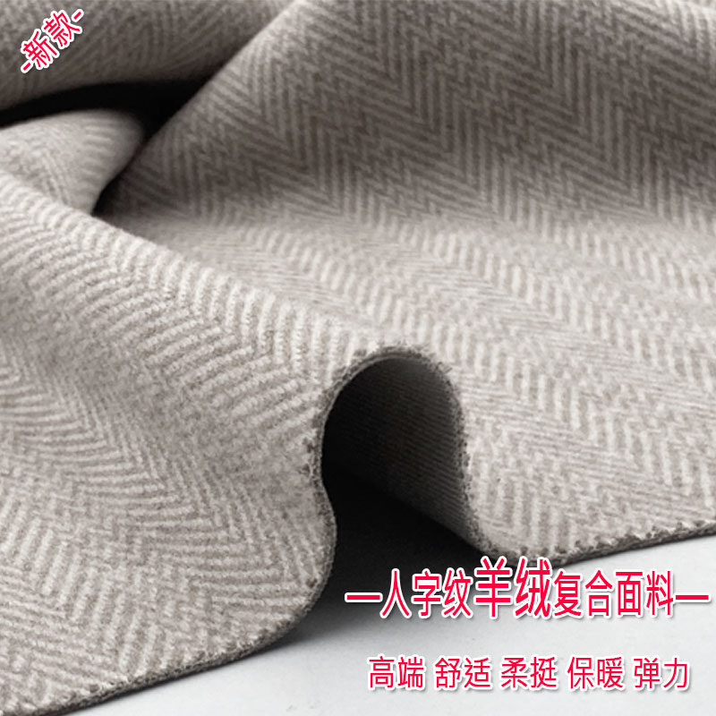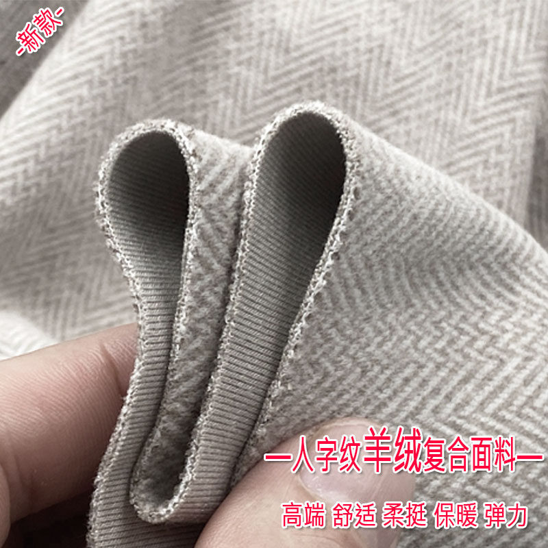 秋冬高档人字纹羊绒复合布料弹力垂感裤子保暖外套裙子服装面料