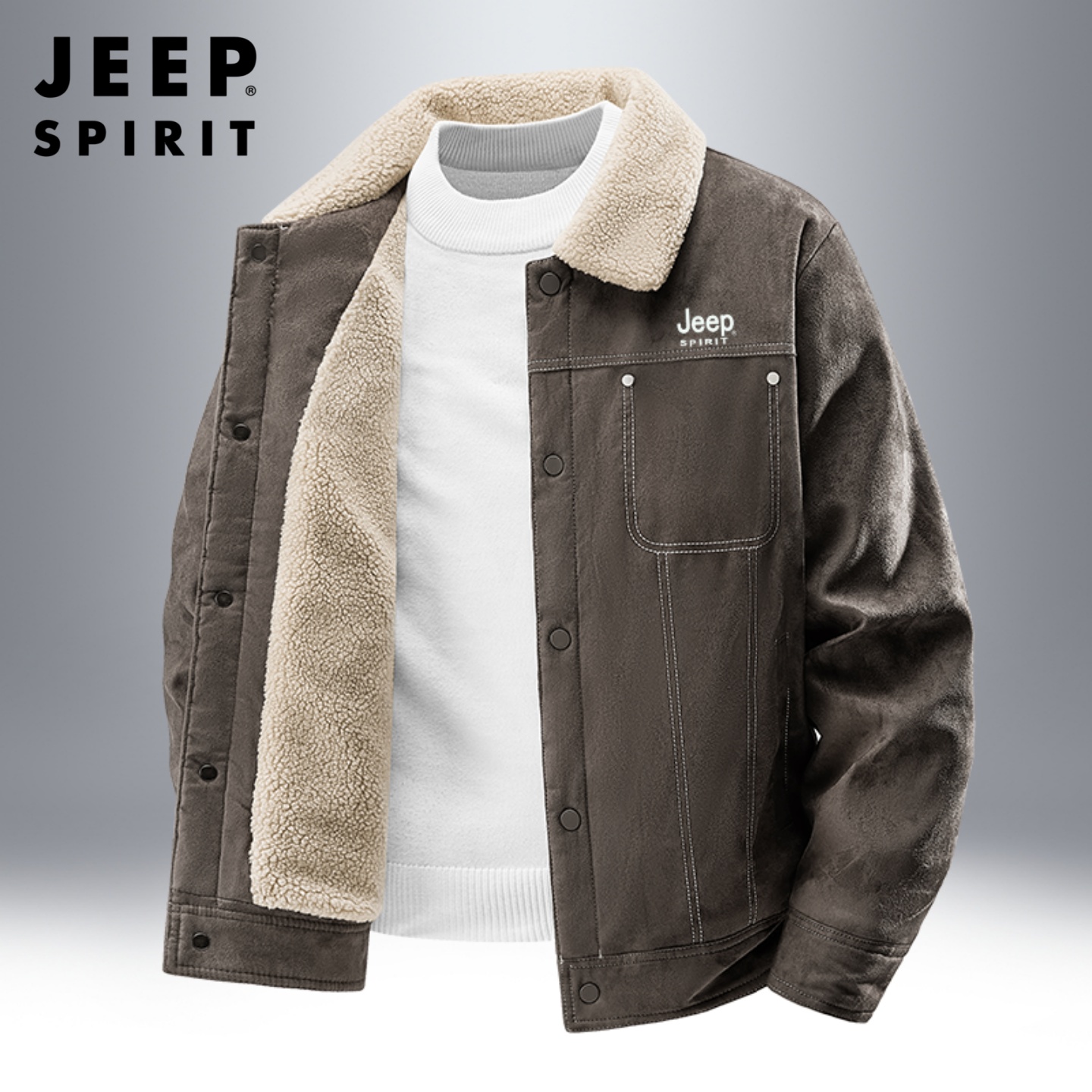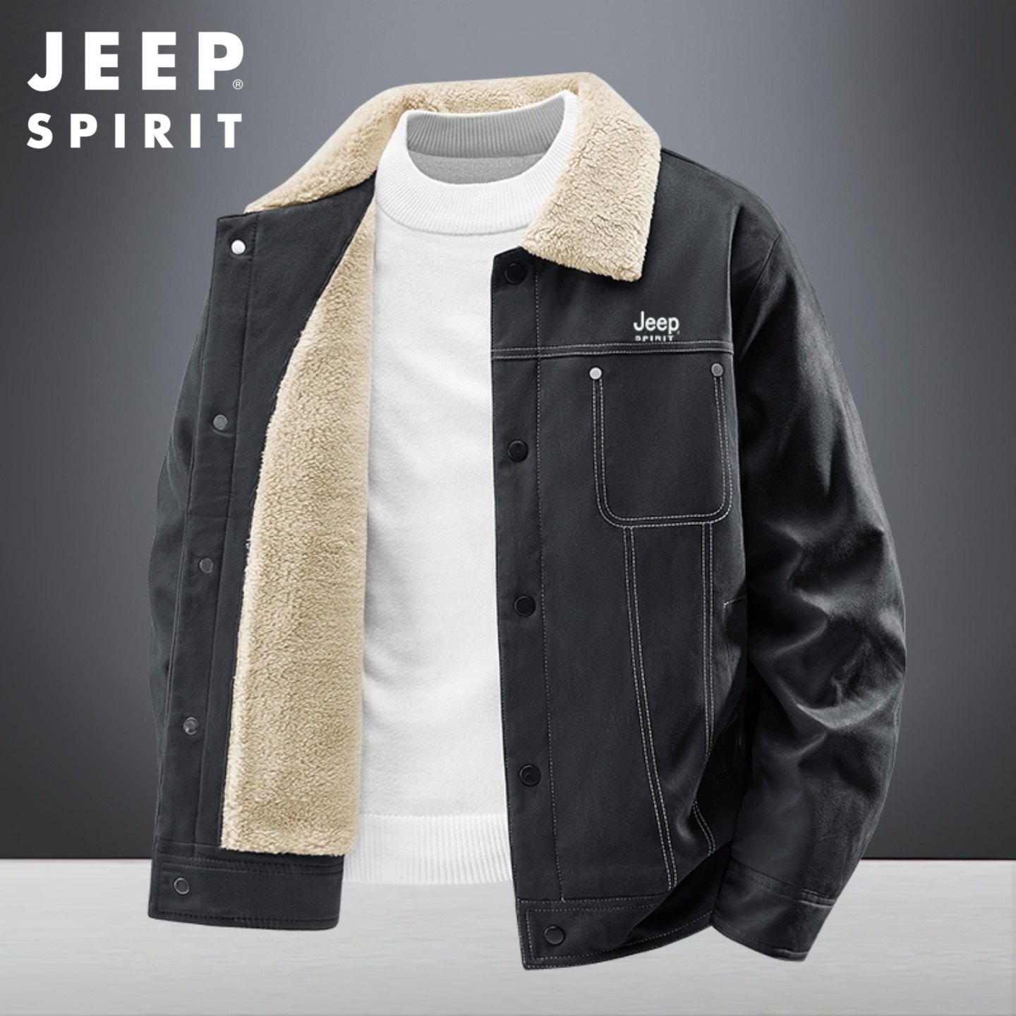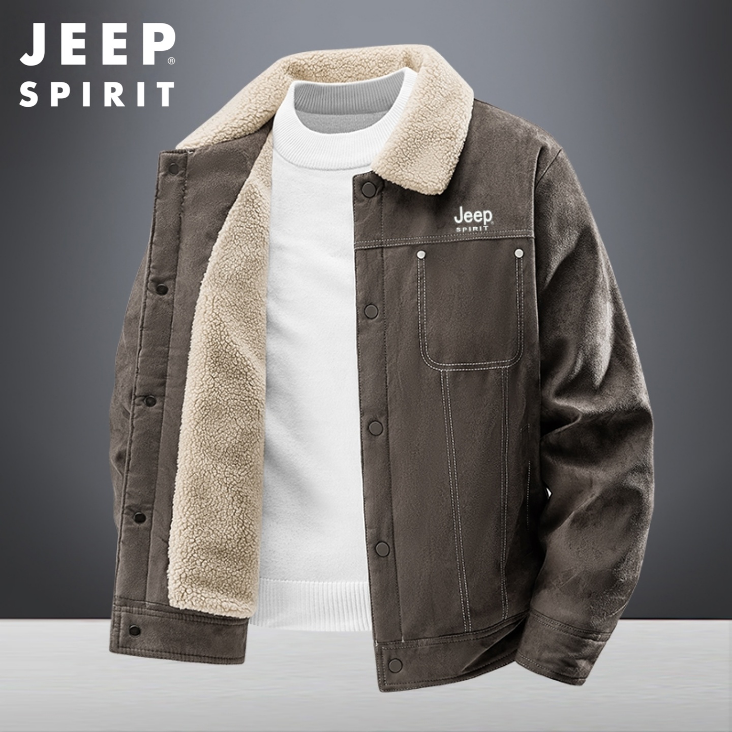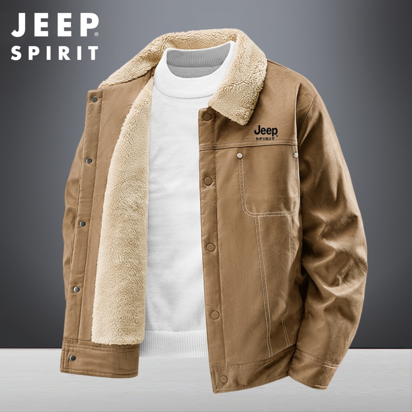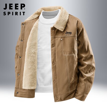 吉普冬季加绒加厚外套男士中年爸爸冬装保暖羊羔绒翻领休闲夹克男