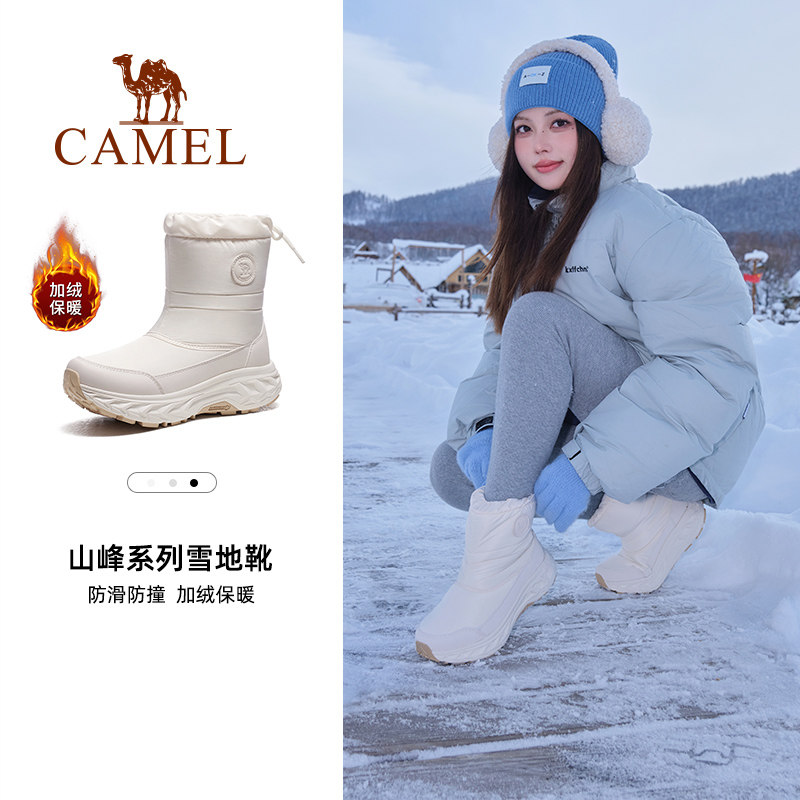 骆驼户外靴雪境雪地靴冬季新款女鞋加绒保暖防水防滑棉鞋高帮靴子