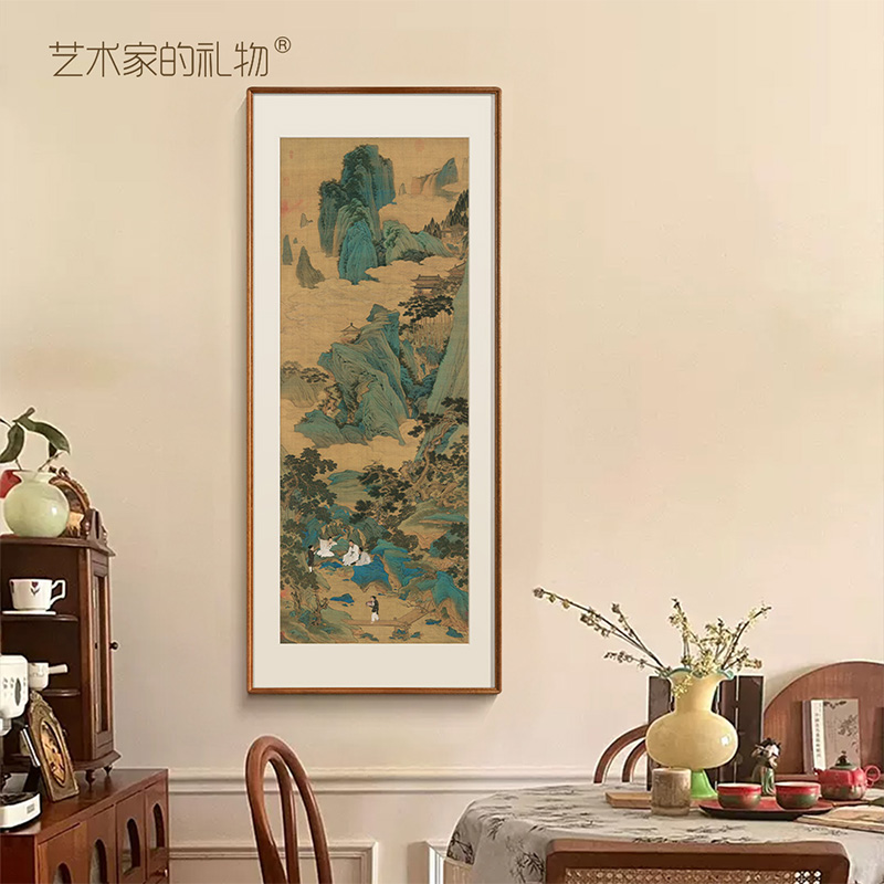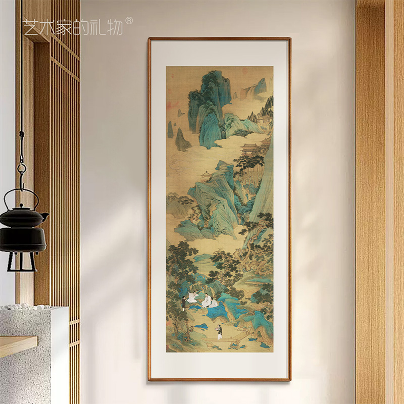 仇英 桃源仙境图 新中式客厅玄关装饰画竖版山水画办公室书房挂画