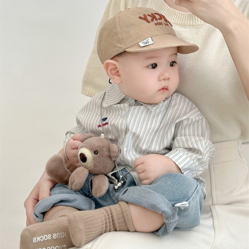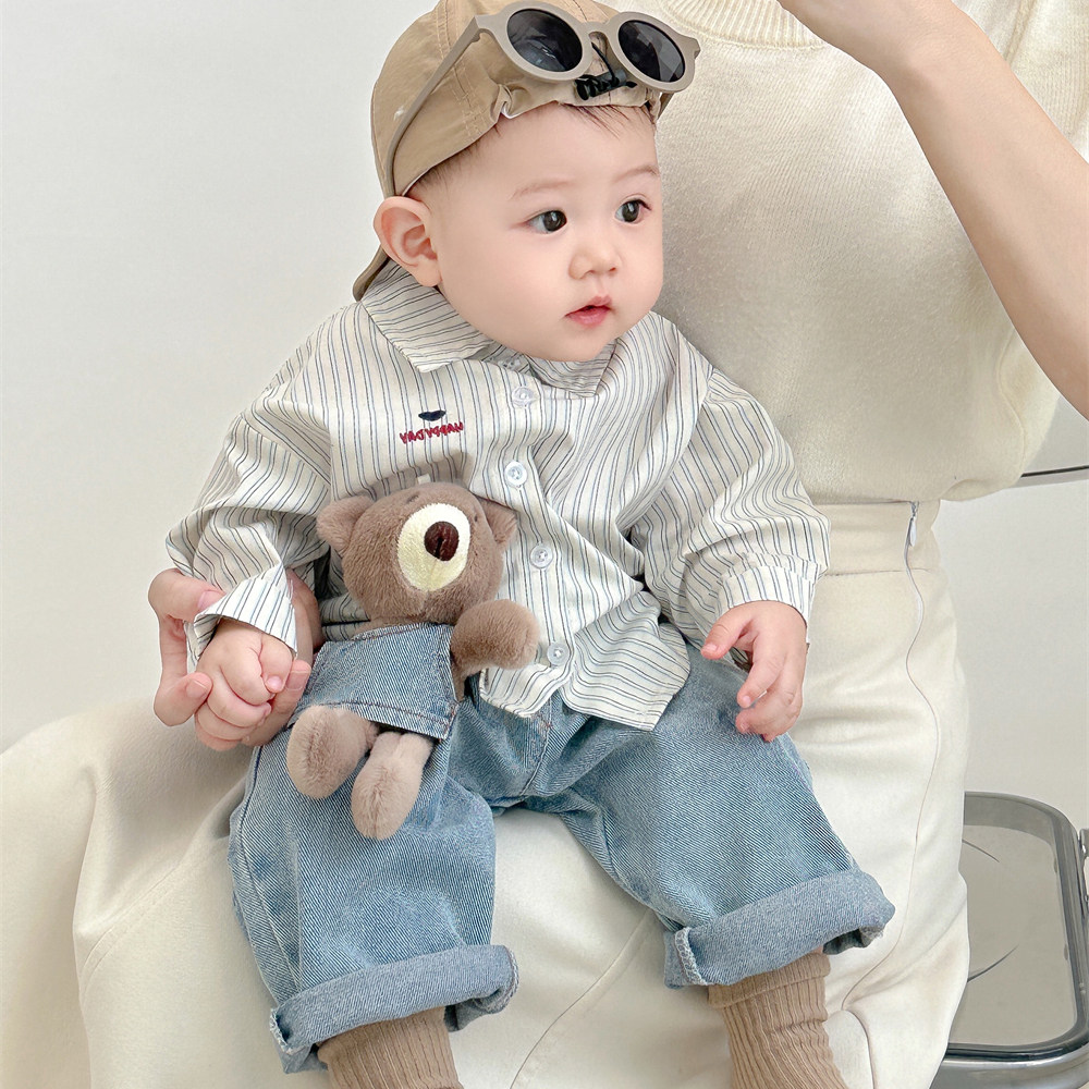2025新款婴幼童韩版清新绣花衬衫春秋男女宝卡通百搭牛仔裤子套装