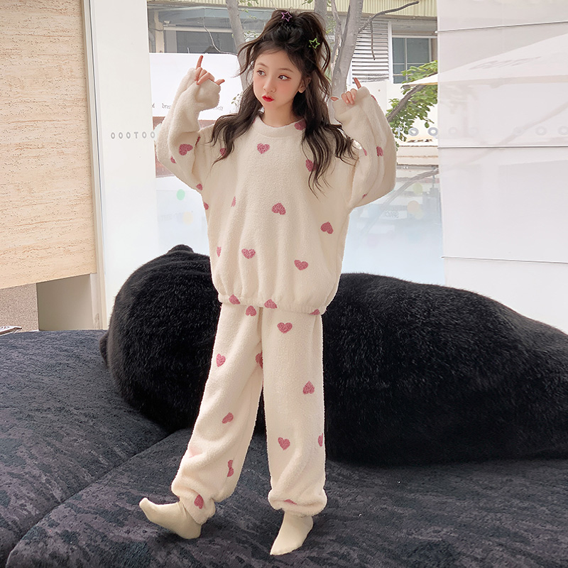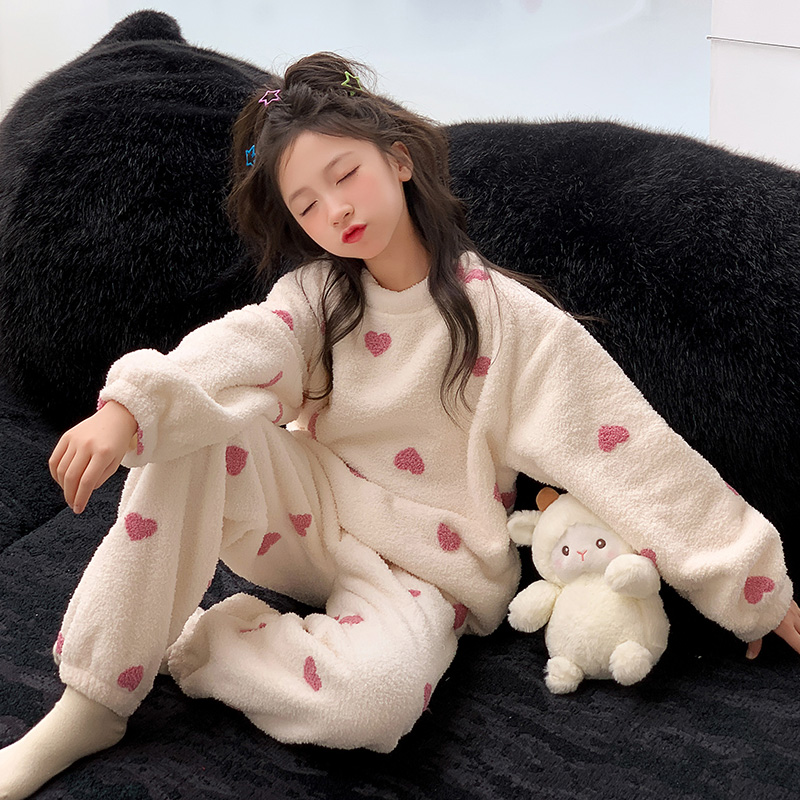 女童睡衣冬2025新款儿童珊瑚绒女孩大童秋冬加绒加厚法兰绒家居服