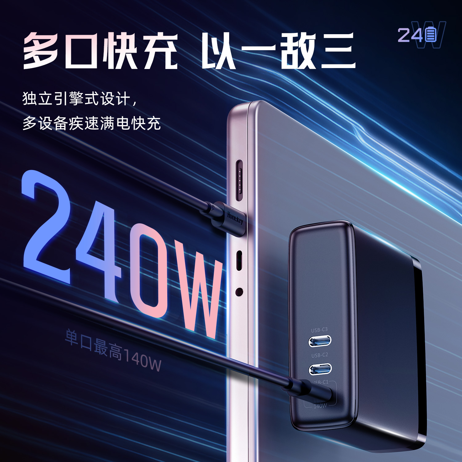 航嘉高能S240氮化镓240W充电器PD快充头适用iPhone17苹果16华为小米笔记本安卓手机mac电脑typec多口插头