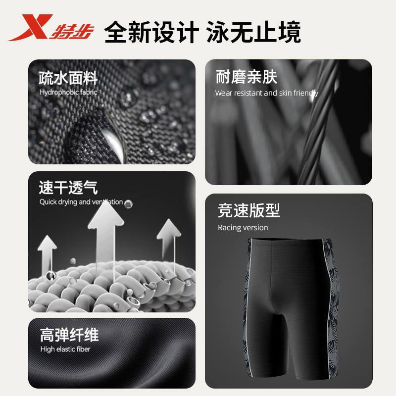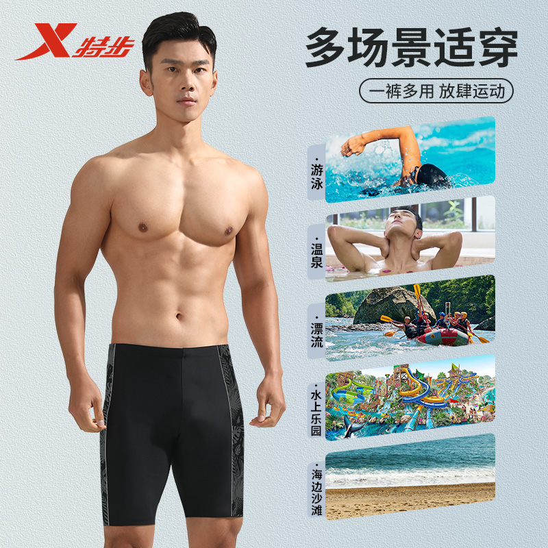 特步泳裤男2024新款防尴尬五分游泳裤泳镜泳帽三件套男士泳衣装备