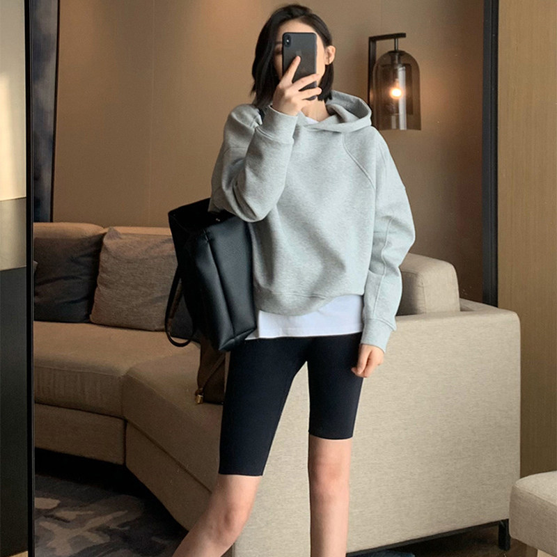 加绒宽松小个子短款连帽卫衣女