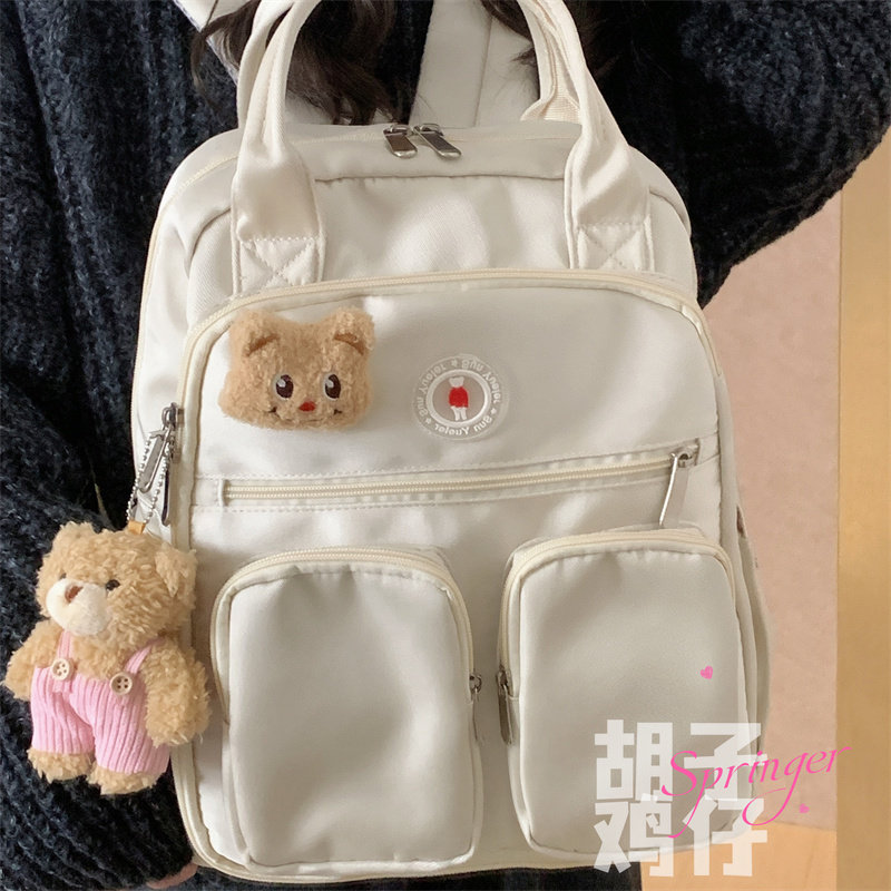 日系ins风网红少女手提双肩包女韩版校园多功能口袋背包学生书包