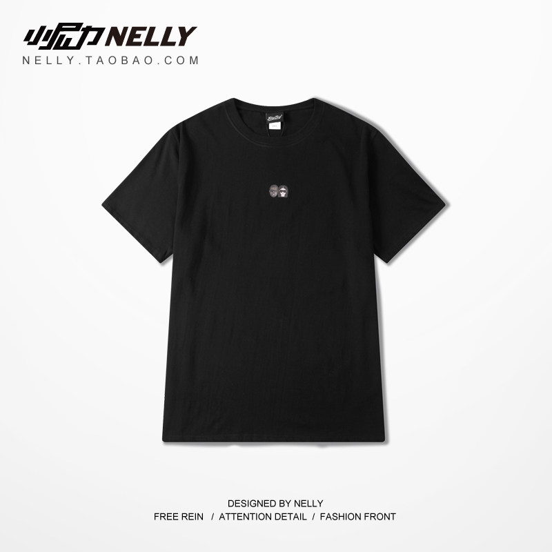 夏季新款原创复古卡通嘻哈说唱日系印花纯棉修身短袖T恤男圆领