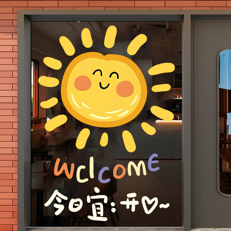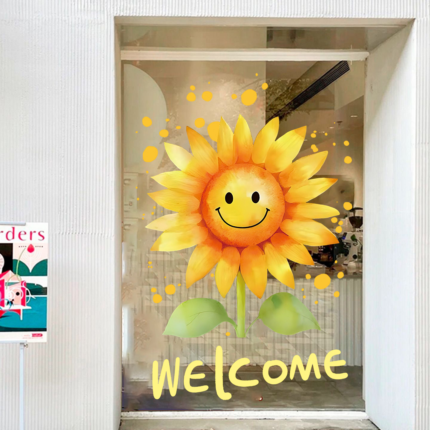 小花朵向日葵玻璃门贴纸客厅阳台厨房推拉防撞门卡通可爱静电贴画