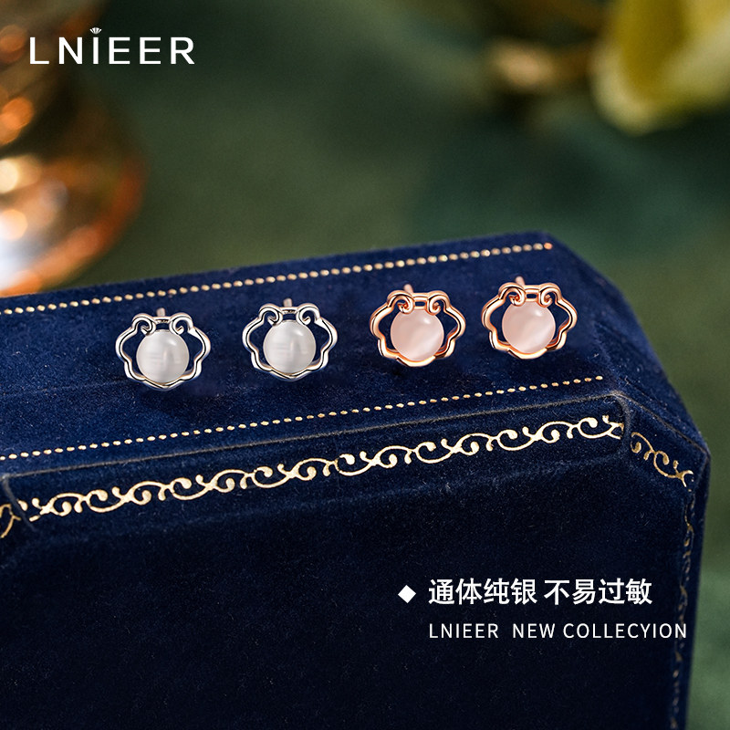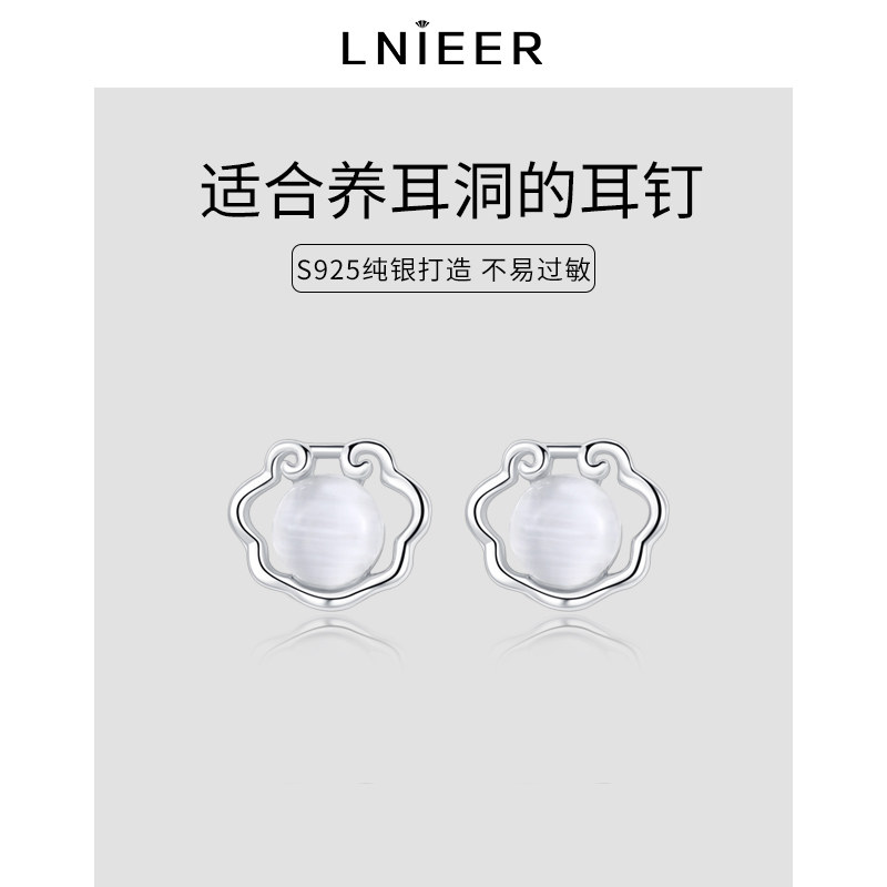 S925纯银新中式平安长命锁耳环
