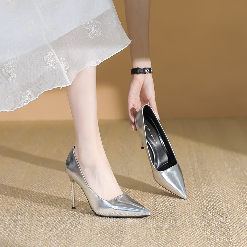 高跟鞋2024新k款网红黑色职业百搭尖头工作鞋子女春秋细跟浅口单