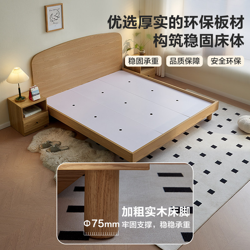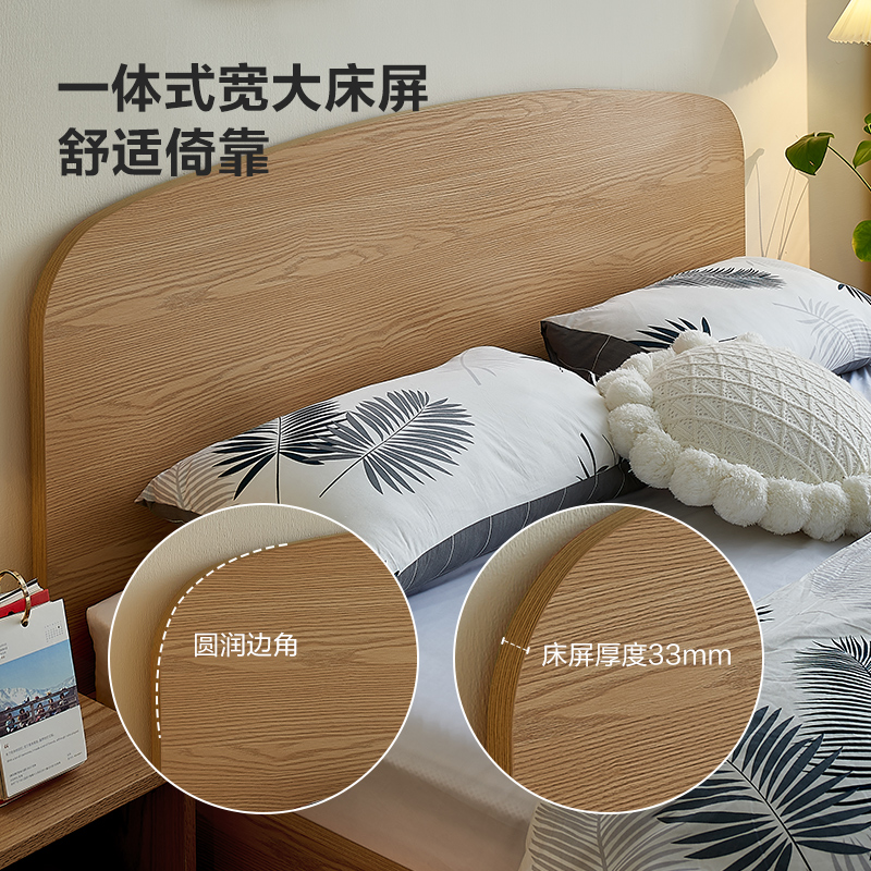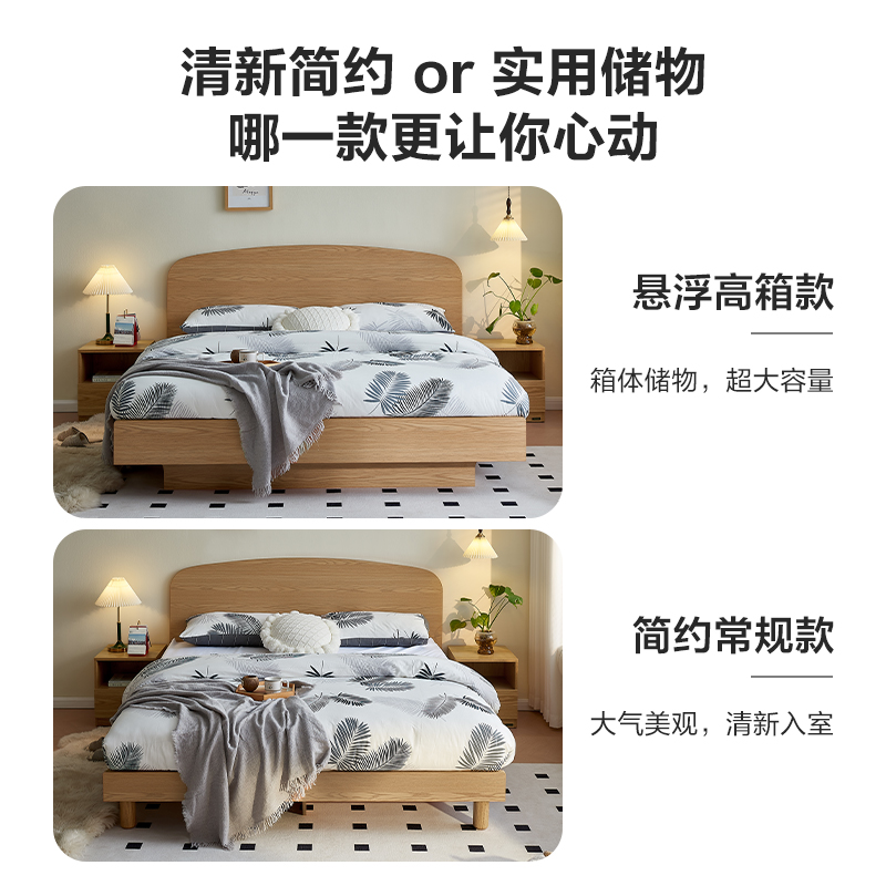 全友家居现代简约床原木风卧室箱体储物收纳悬浮双人床2025新款