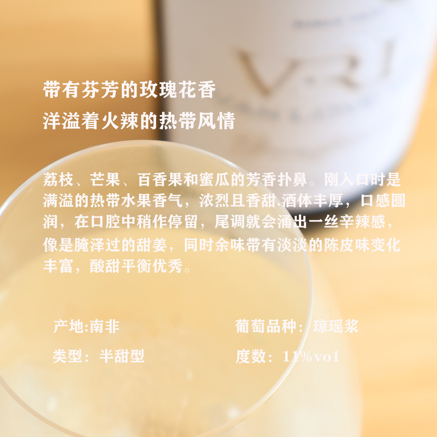 玫瑰荔枝冰 梵劳伦琼瑶浆晚收半甜白葡萄酒南非开普进口VRL小甜酒
