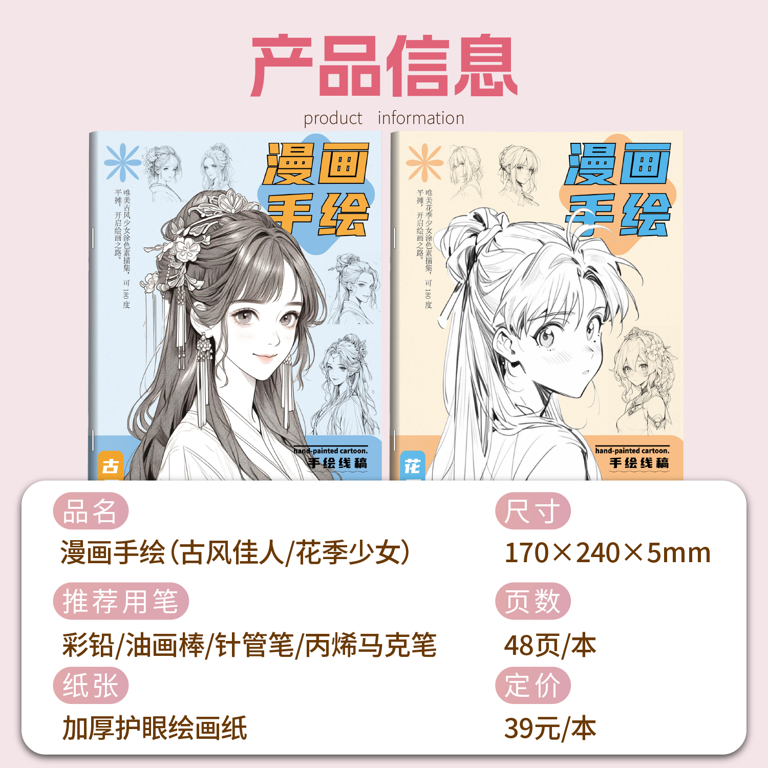 漫画手绘古风美少女儿童简笔画入门训练描摹本画画本涂色本创意练习图画本女孩男孩都适用
