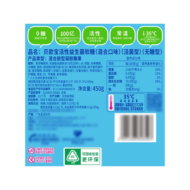 山姆正品会员超市代购活菌无糖型混合口味糖果贝欧宝活性益生菌软