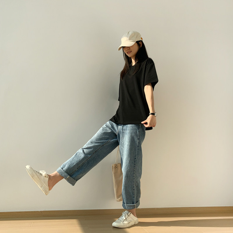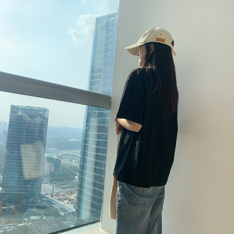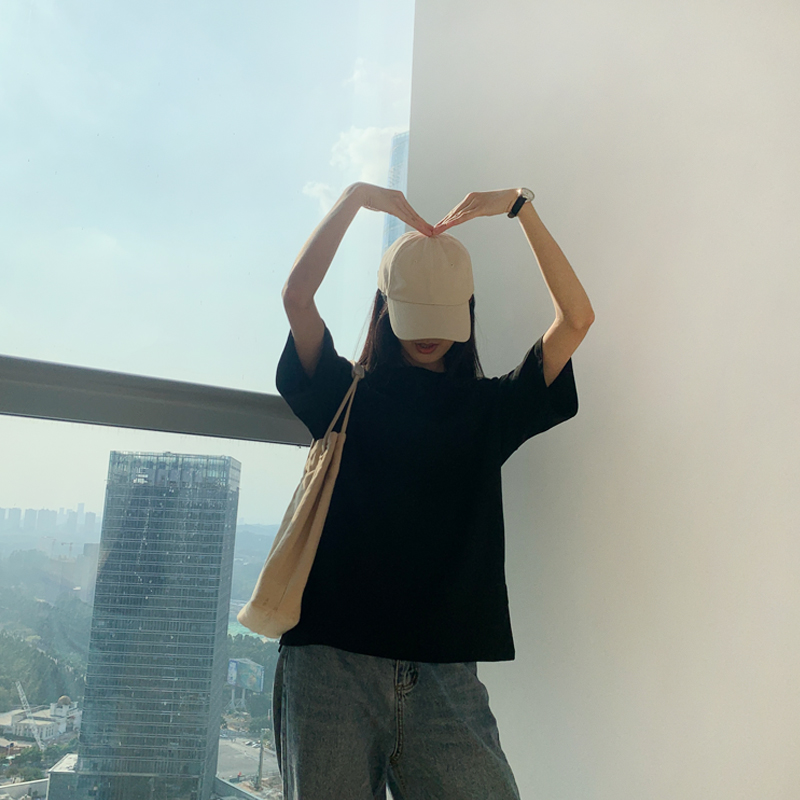 夏季纯黑色t恤女棉质短袖半袖宽松港味内搭上衣纯色大码学生ins潮