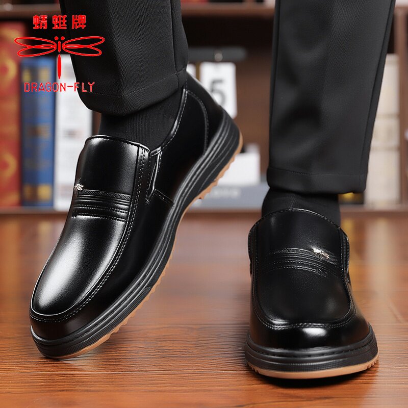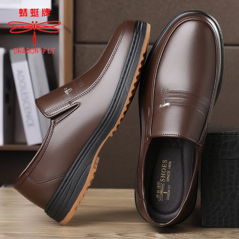 【100%全牛皮】蜻蜓牌男士皮鞋商务休闲真皮牛筋底超软防滑爸爸鞋
