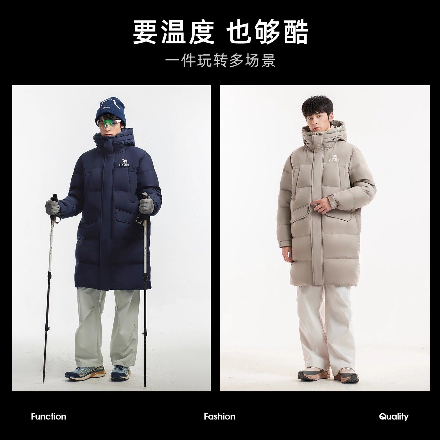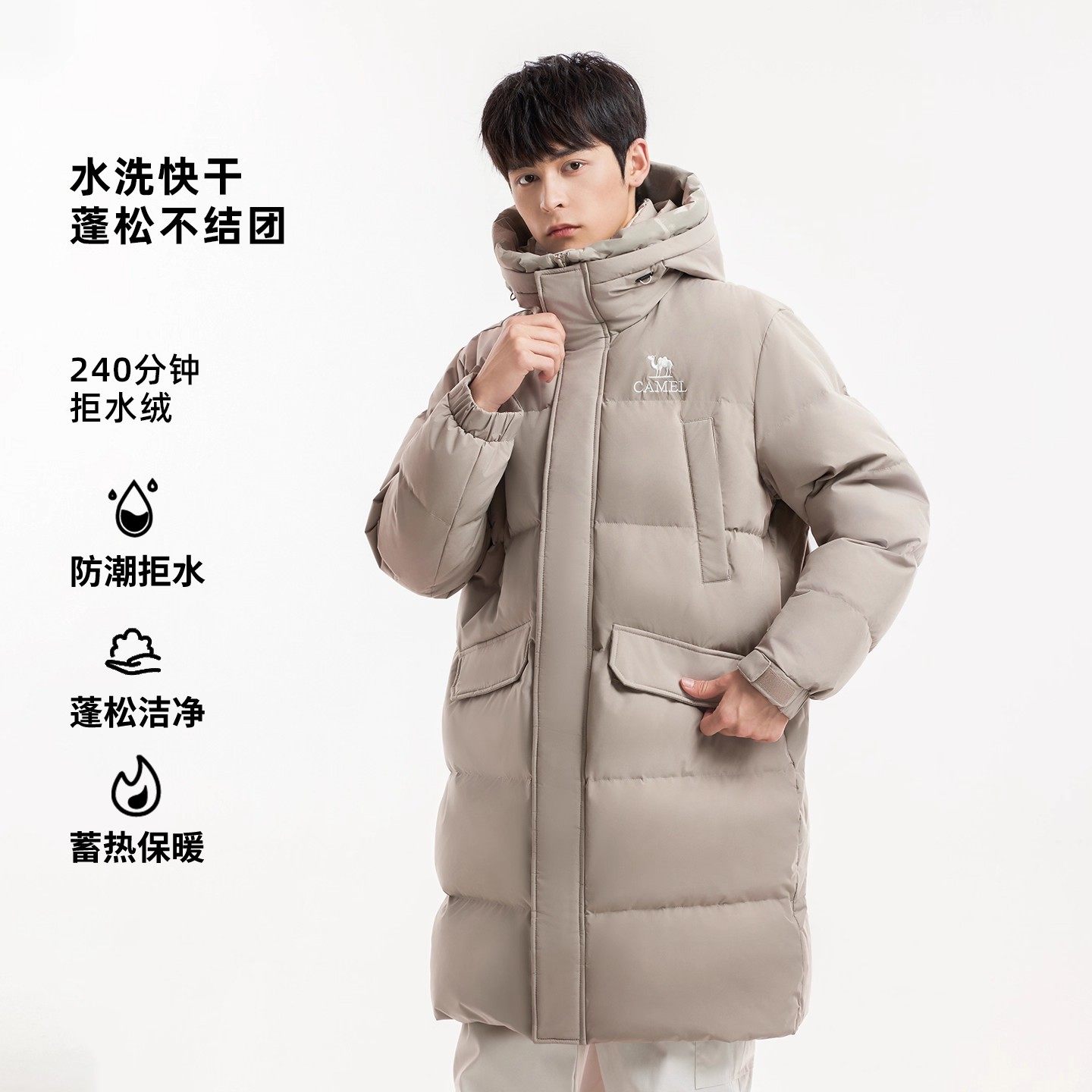 骆驼中长款羽绒服男冬季户外