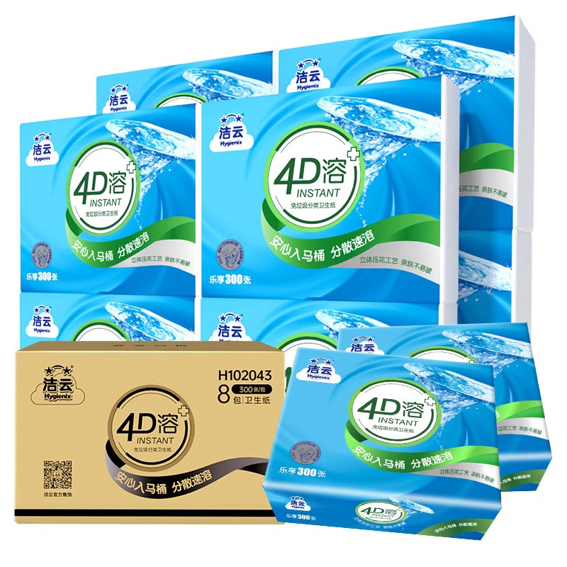 洁云4d溶卫生纸水溶性平板纸可溶厕纸卫生间纸巾家用实惠装整箱批