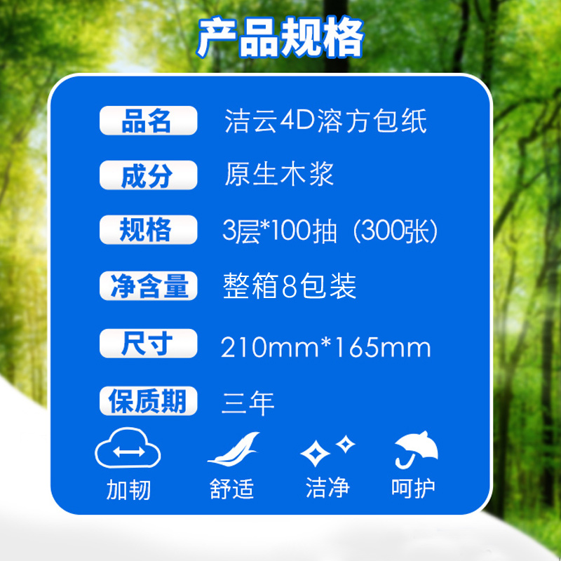 洁云4d卫生纸水溶性平板家用