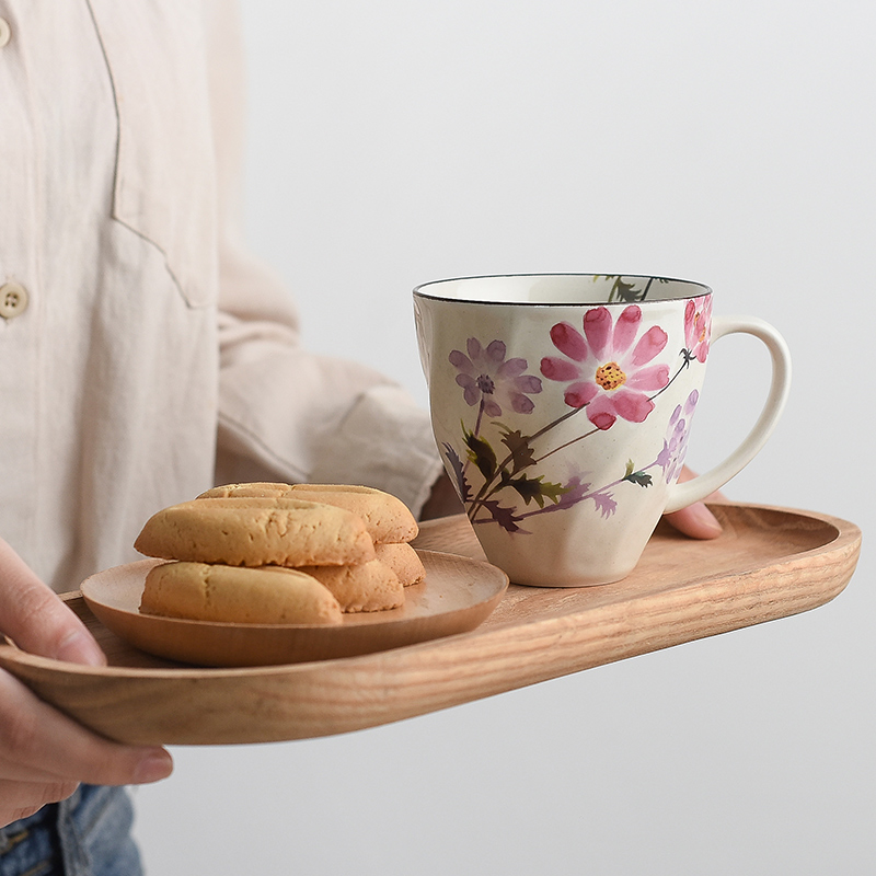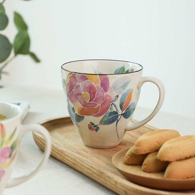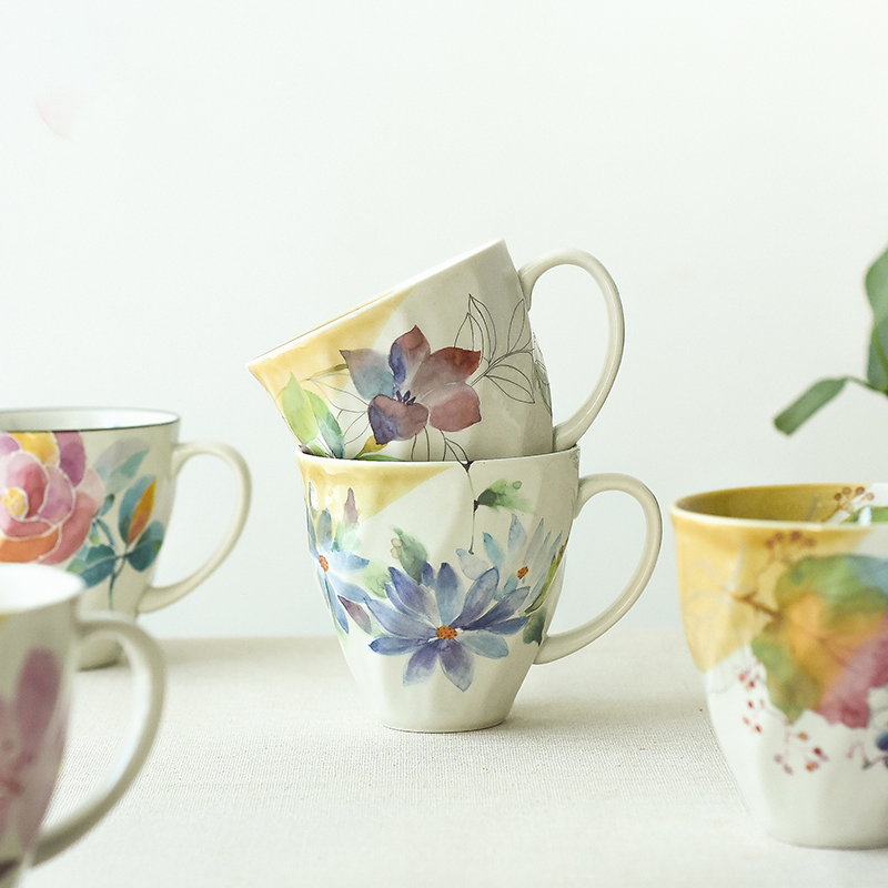 美浓烧ceramic 蓝陶瓷茶杯水杯咖啡杯十二月花语生日礼马克杯
