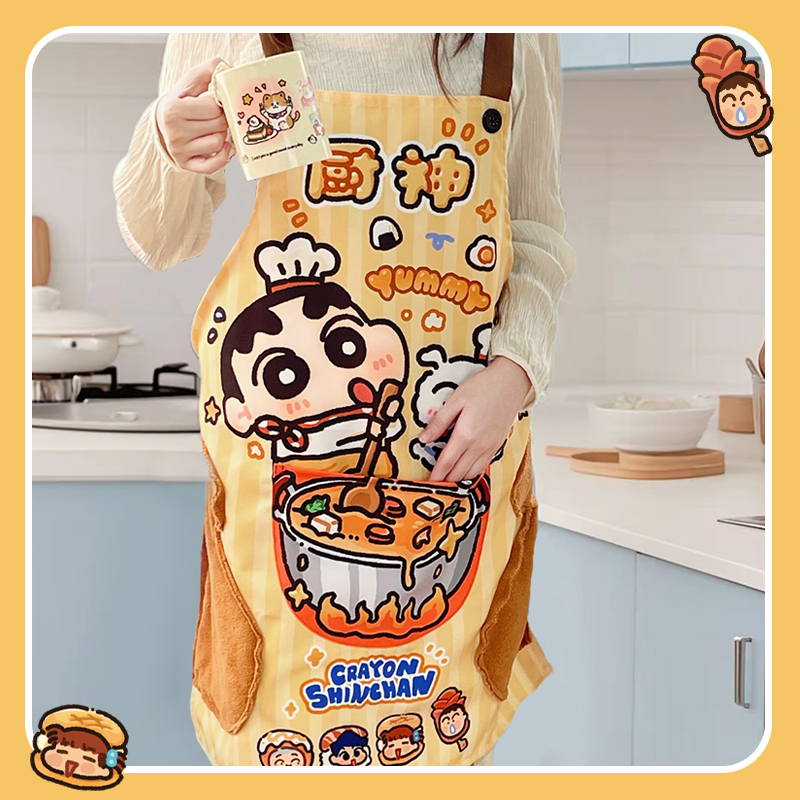 蜡笔小新围裙厨房家用夏薄款少女感做饭专用罩衣防水防油可爱围腰
