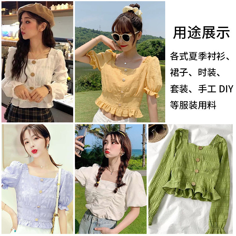 弹力泡泡格子雪纺布料夏季褶皱透气裙子衬衫布头清仓处理服装面料