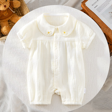 纯棉夏装,婴儿短袖纱布连体衣
