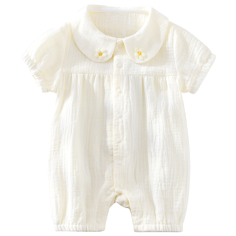 婴儿夏装纯棉短袖连体衣女宝宝外出纱布衣服3-6-9-12个月哈衣短爬