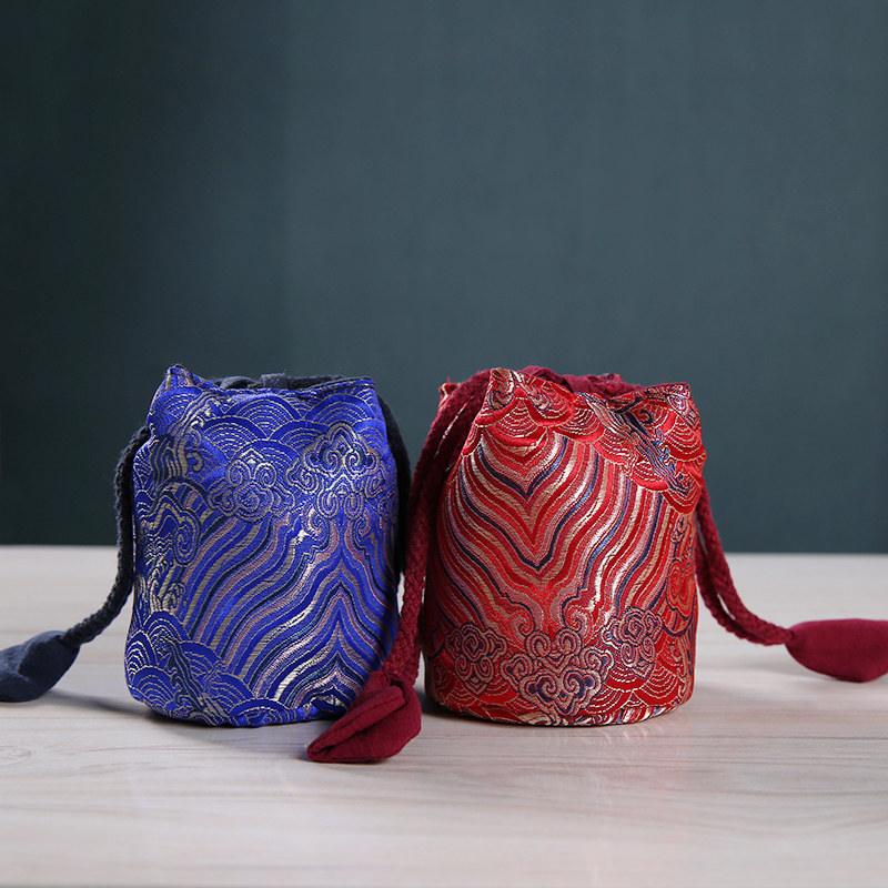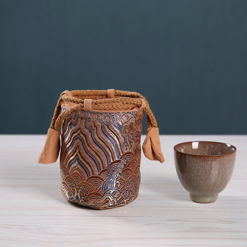 手工加厚织锦段丝绸茶叶罐茶壶主人茶杯旅行收纳包夹棉麻布袋布包