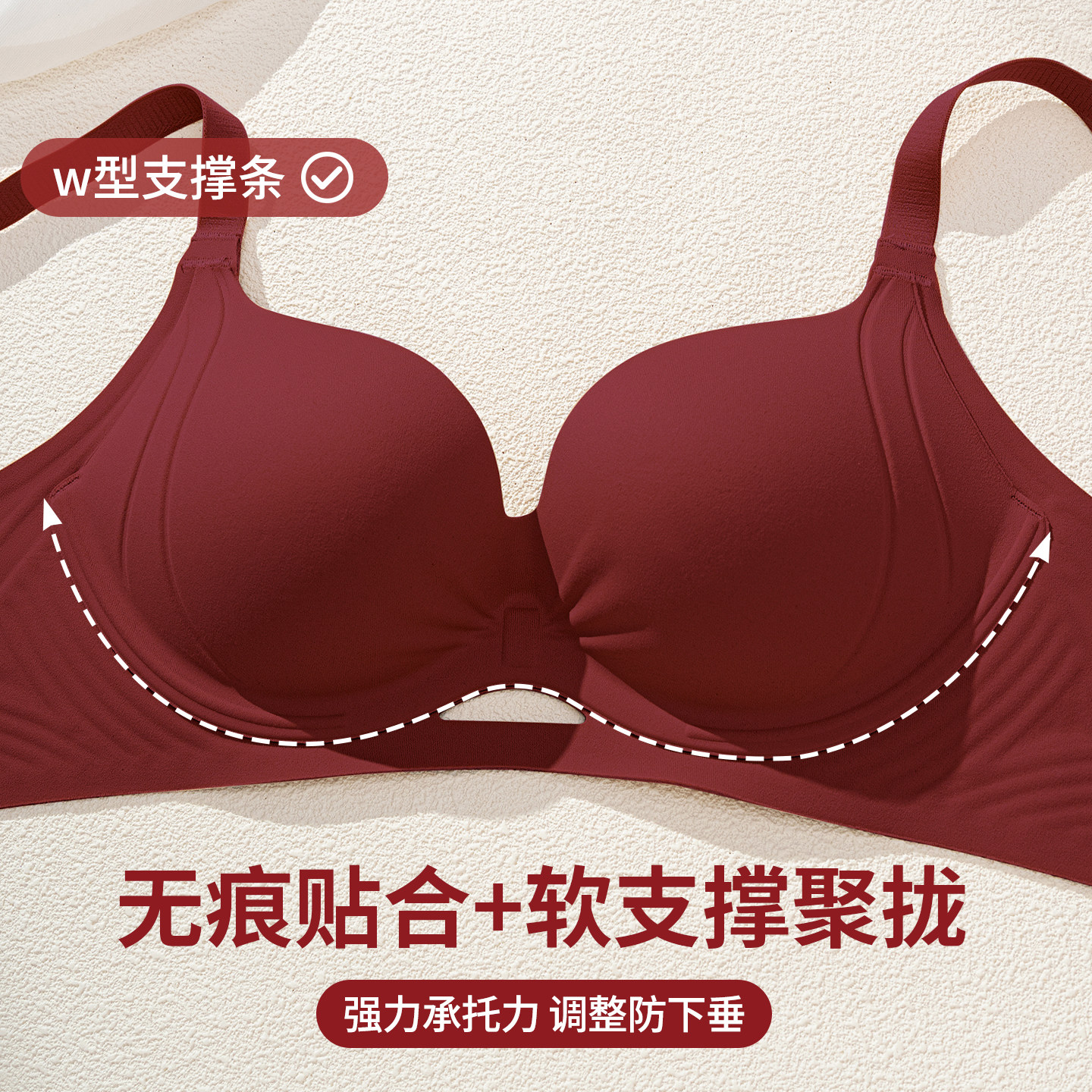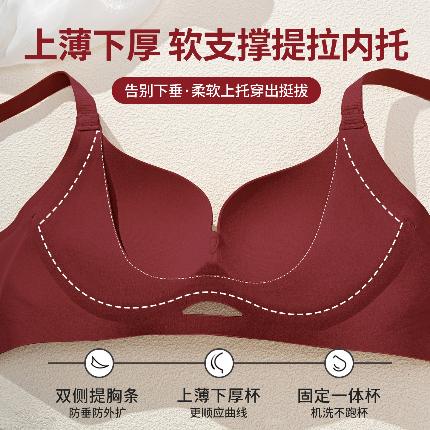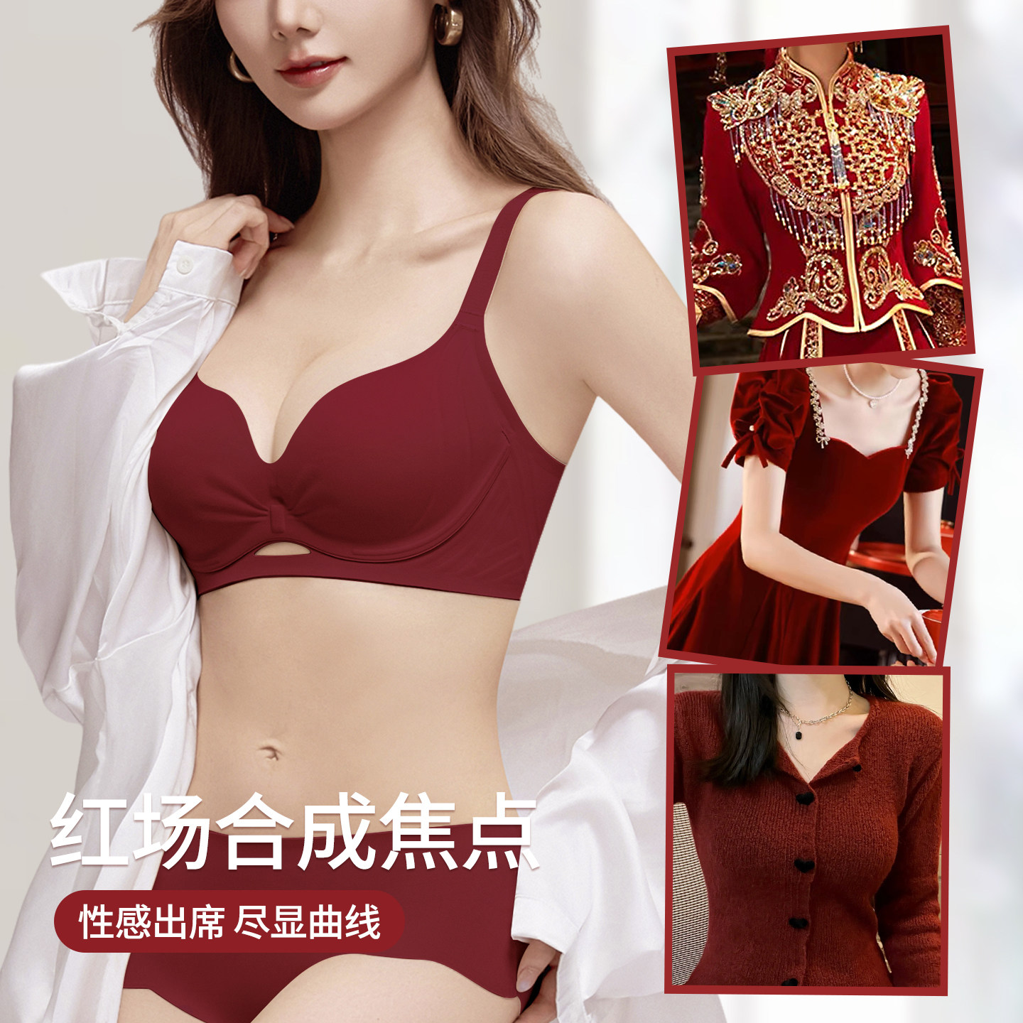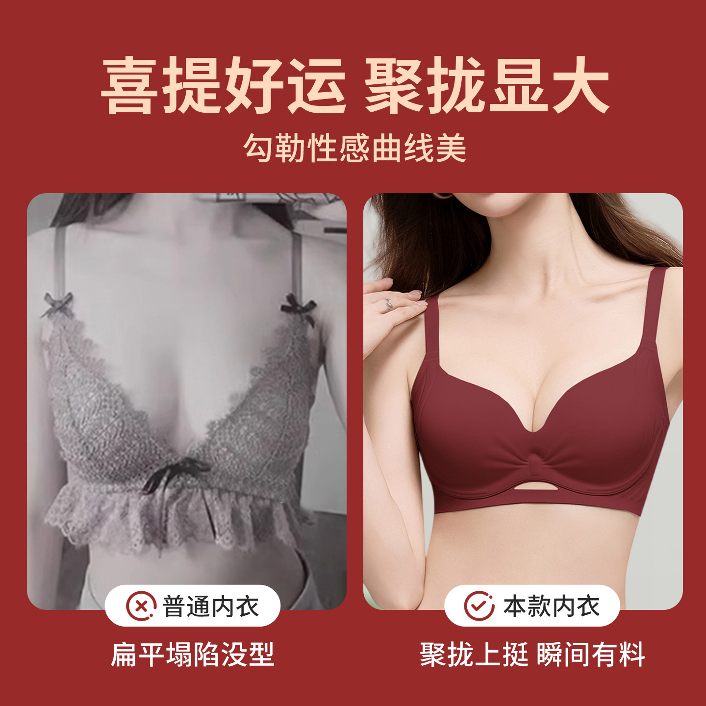 本命年红色内衣女士提拉上托聚拢小胸收副乳防下垂固定杯文胸套装