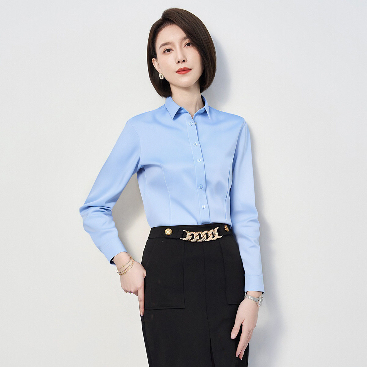 【弹力好穿】罗蒙春秋长袖衬衫女士商务正装通勤职业衬衣女上衣