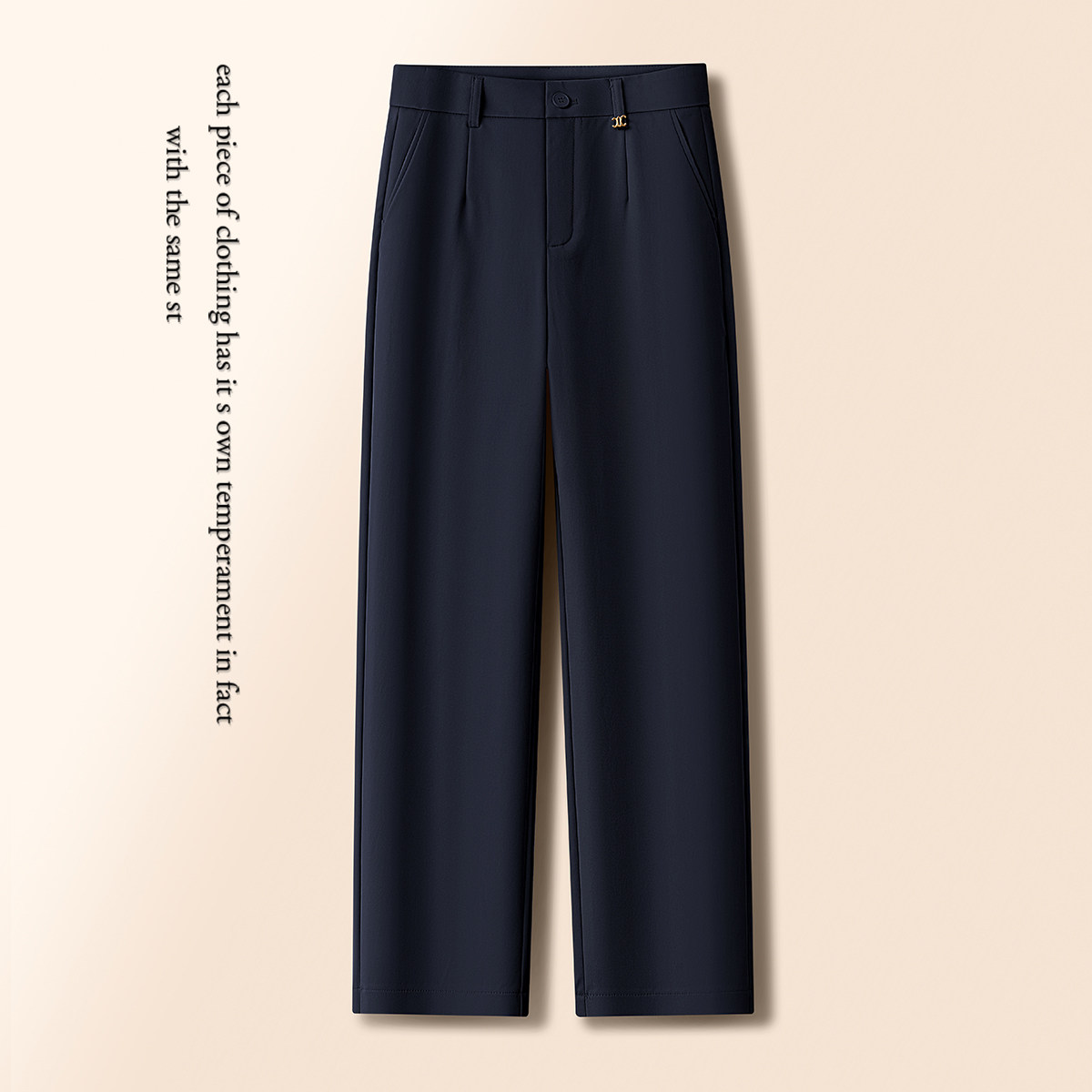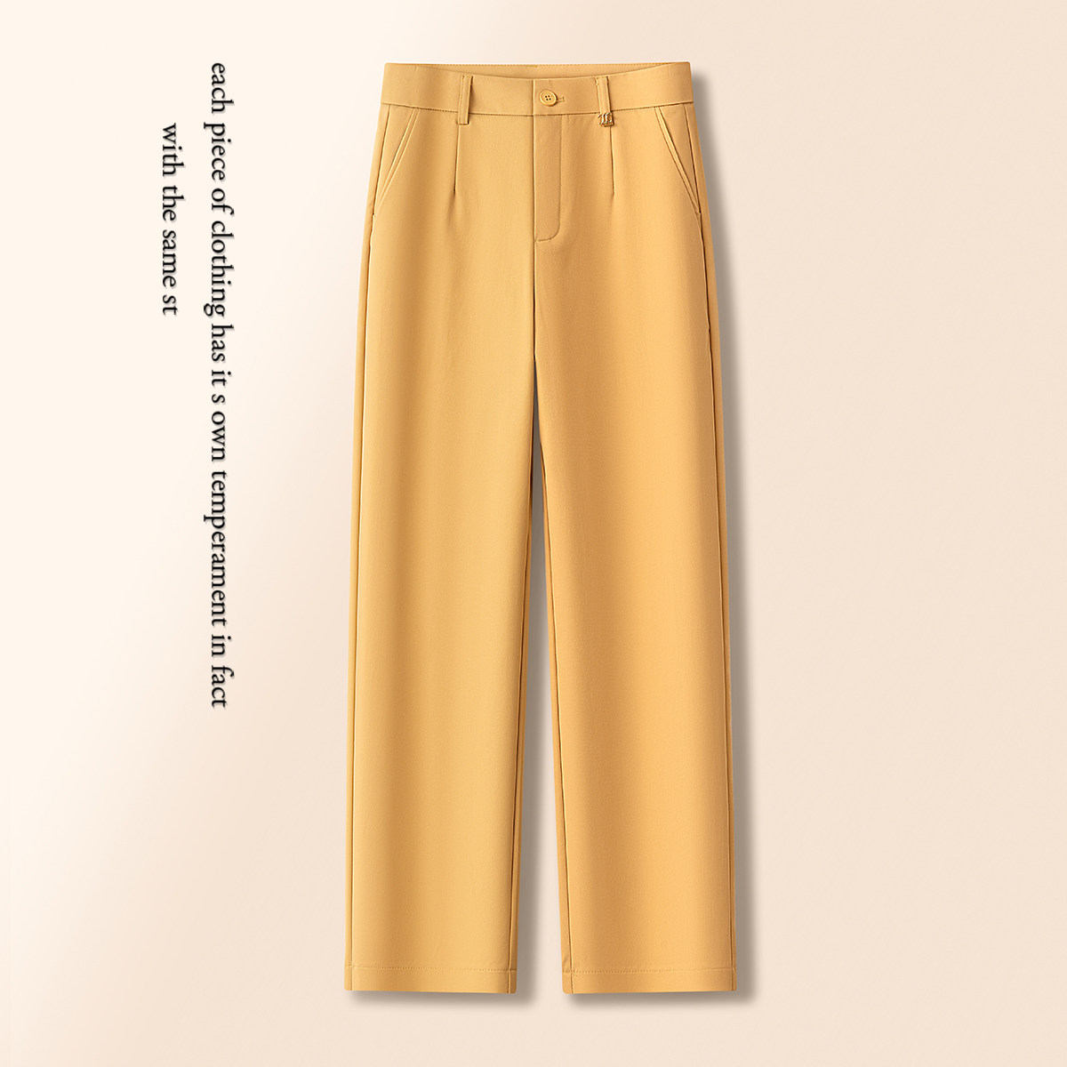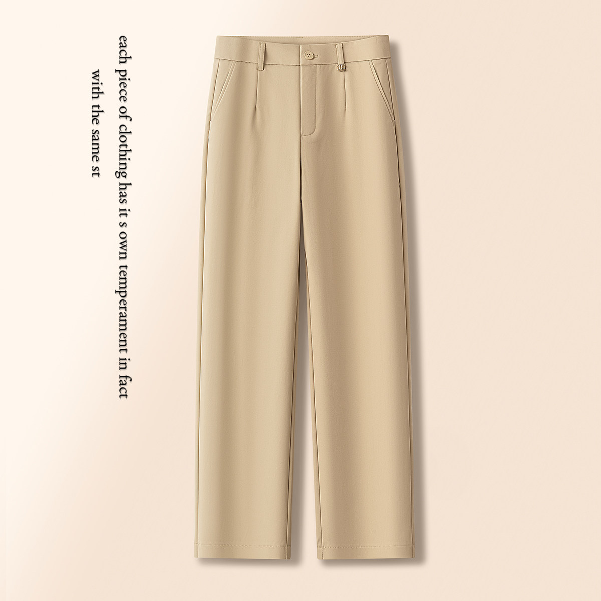 卡其色速干窄版直筒裤女夏季2025新款弹力显瘦休闲裤通勤九分西裤