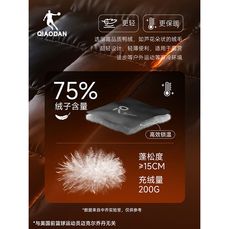 乔丹被窝中长款羽绒服男外套冬季保暖防寒防风防泼水连帽运动上衣
