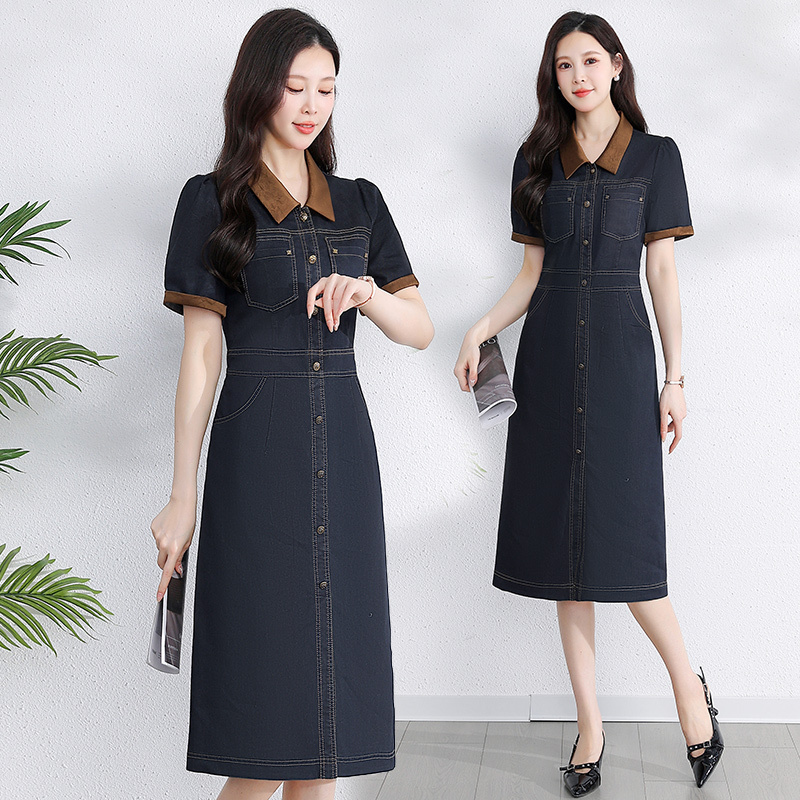 洋气优雅气质牛仔连衣裙女