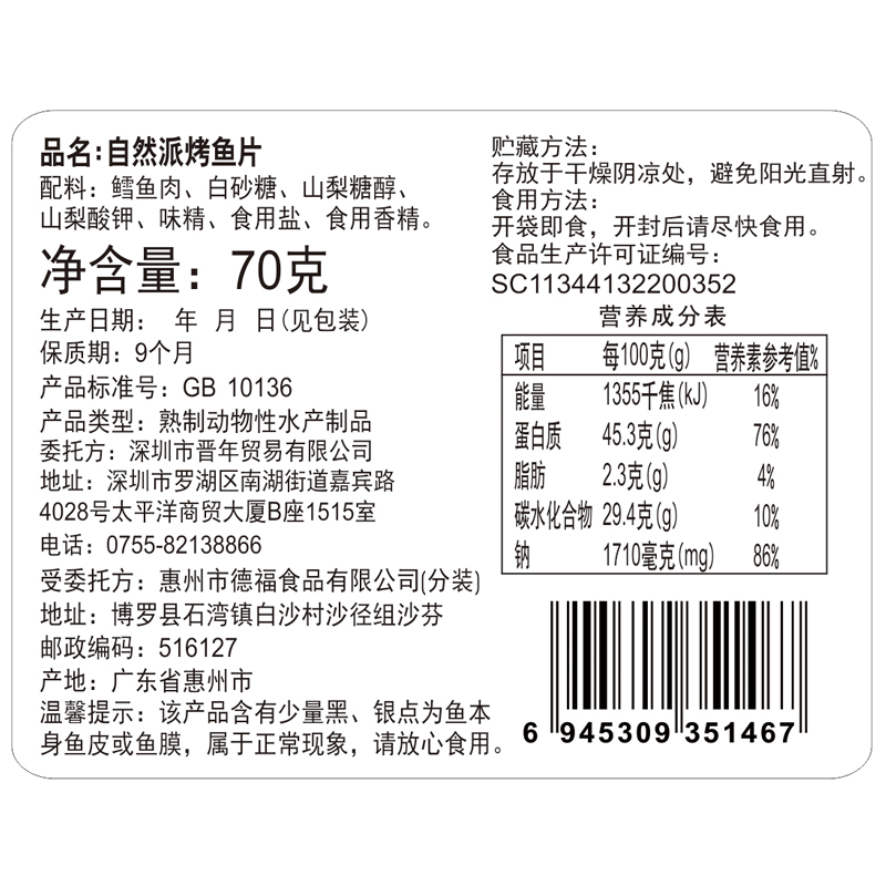 自然派烤鱼片70gx2孕妇休闲零食