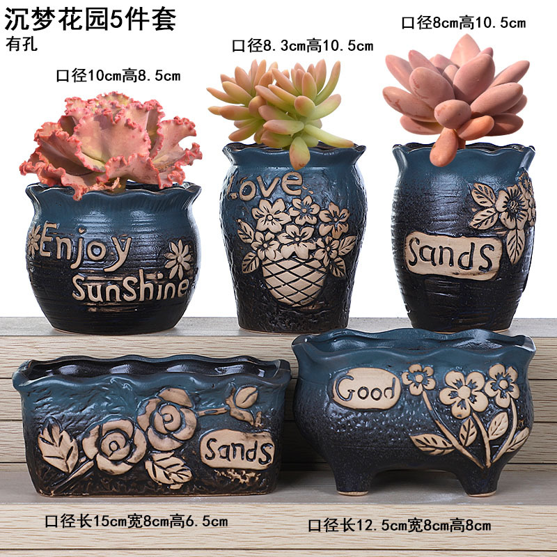 多肉花盆套装组合大口径陶瓷花盆特价个性清仓多肉小花盆大号