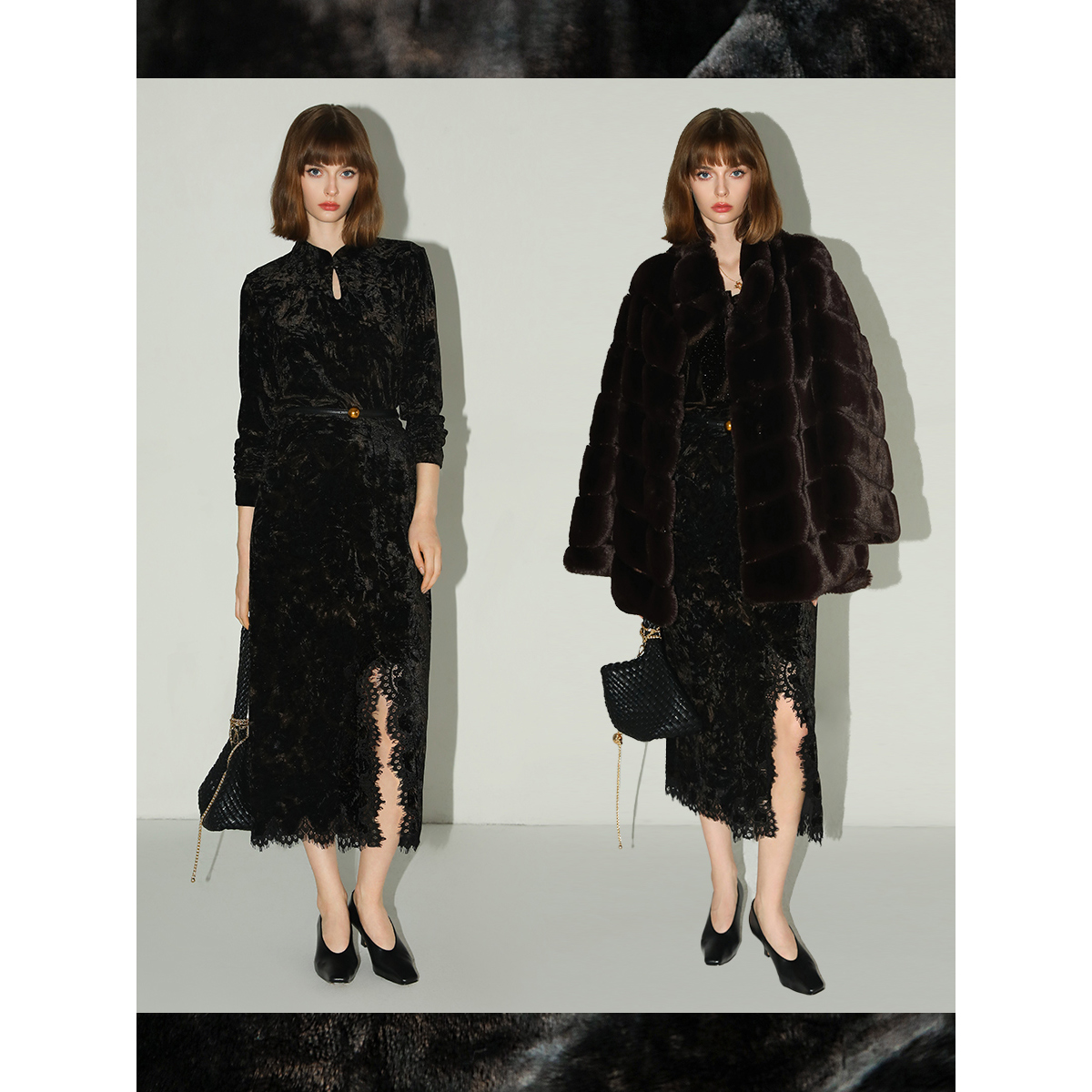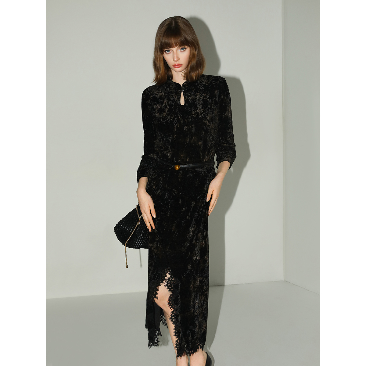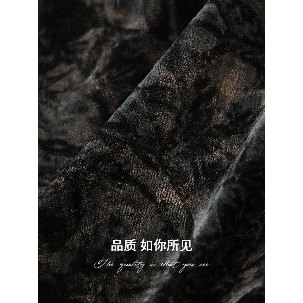 COCOBELLA新中式扎染丝绒半身裙秋冬国风拼接开叉半裙HS3073
