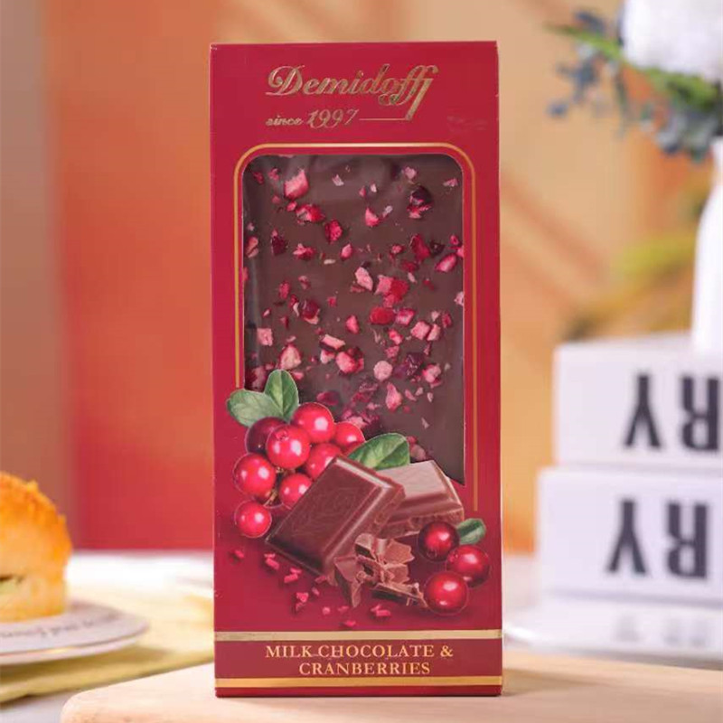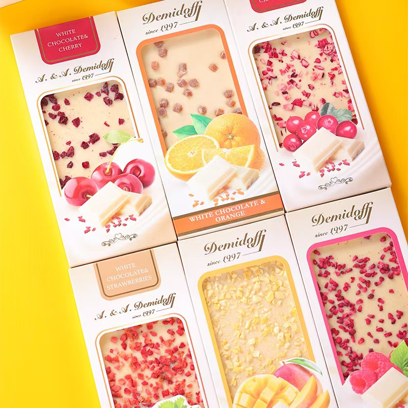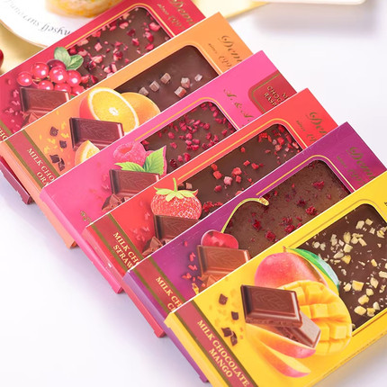 俄罗斯进口牛奶巧克力莎科拉德芒果树莓蔓越莓果干夹心甜品盒装