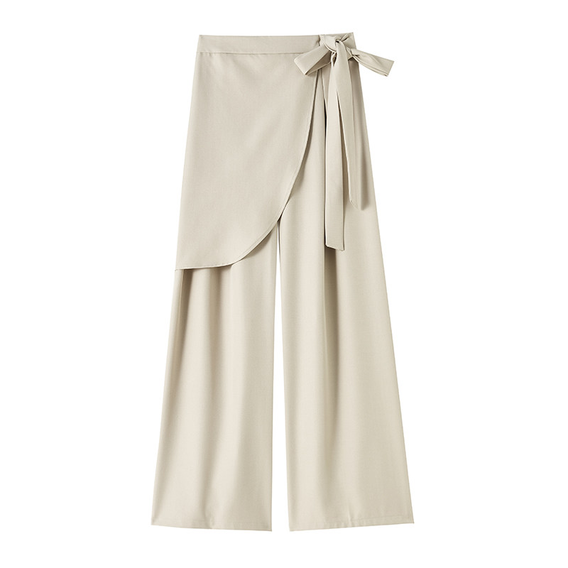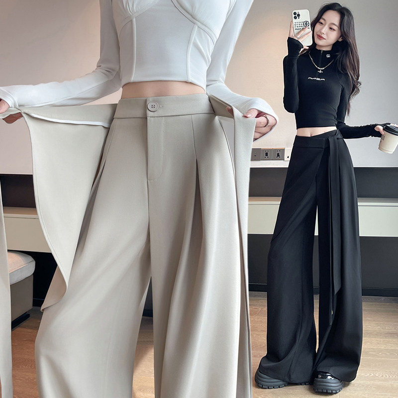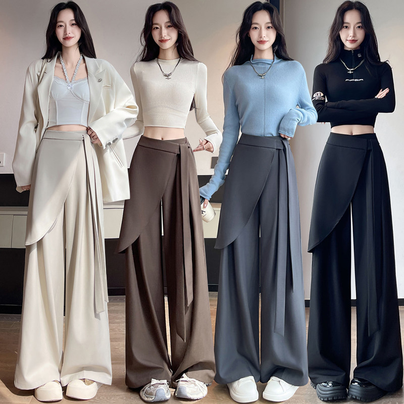 不规则绑带西装裤女2025秋季高腰垂感显瘦休闲直筒拖地裤裙裤阔腿