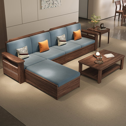 北美黑胡桃木全实木沙发组合宋氏美学冬夏两用小户型储物宋式客厅