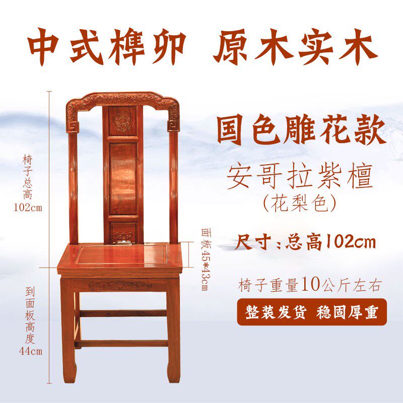 餐椅中式东阳红木花梨木榫卯整装雕花全实木酒店家用靠椅子厂家