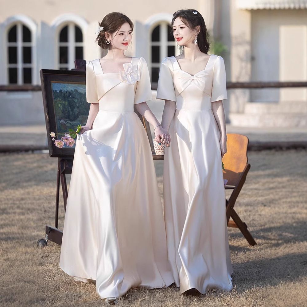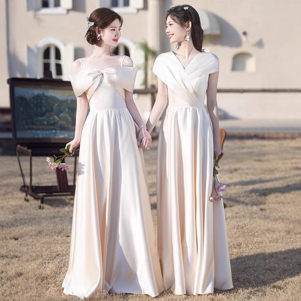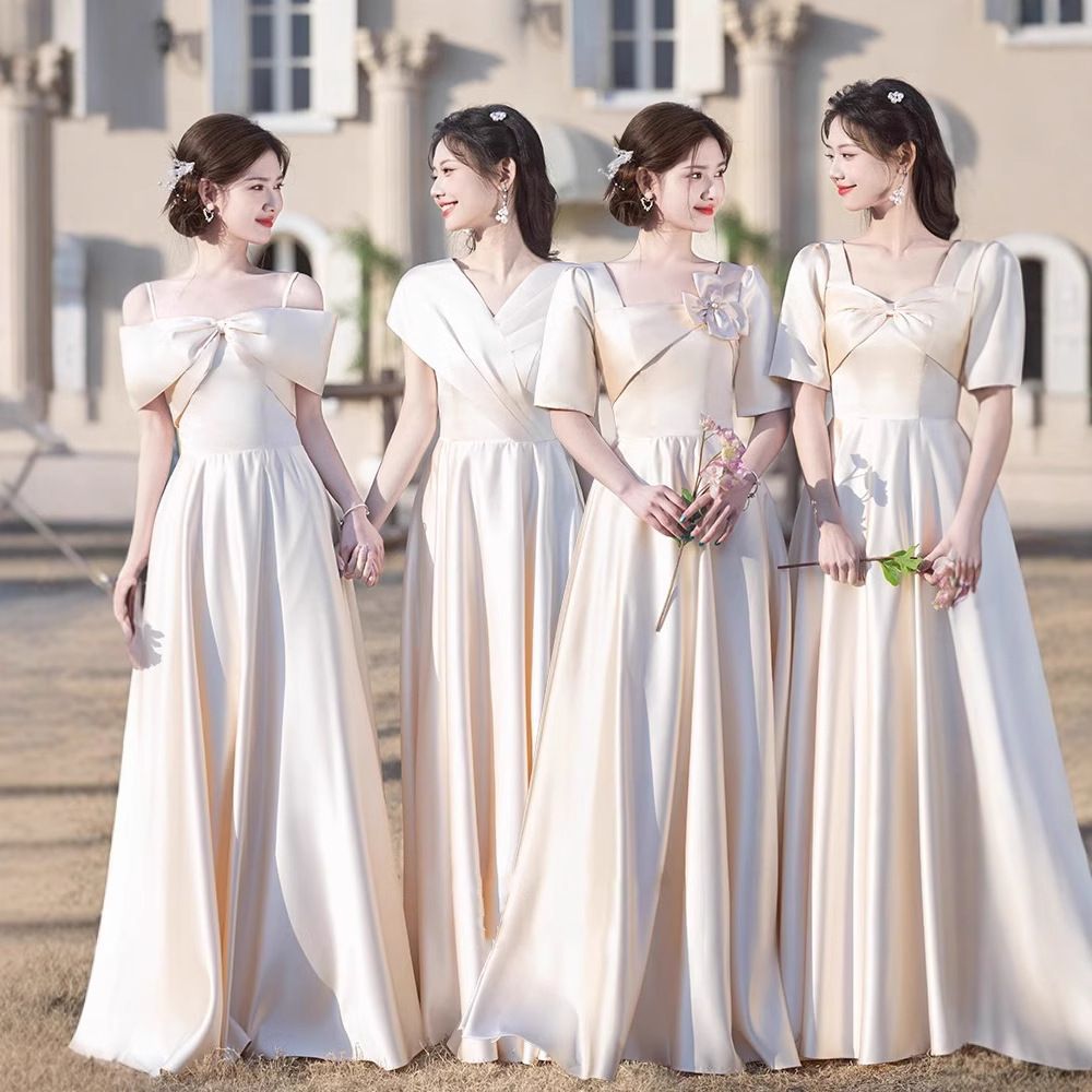 缎面伴娘服2025新款夏香槟色姐妹团礼服裙女平时可穿感晚礼服厂家