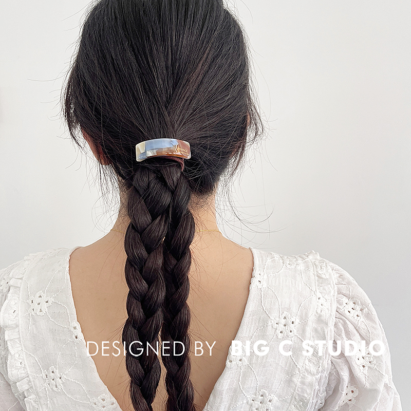 韩国醋酸气质简约金标发圈几何弧形马尾发绳高级感复古少女发饰品