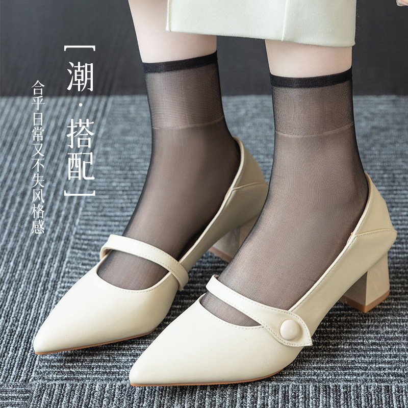 丝袜女薄款短款防勾丝袜子女士黑色肉色夏季透明隐形中筒夏天超薄