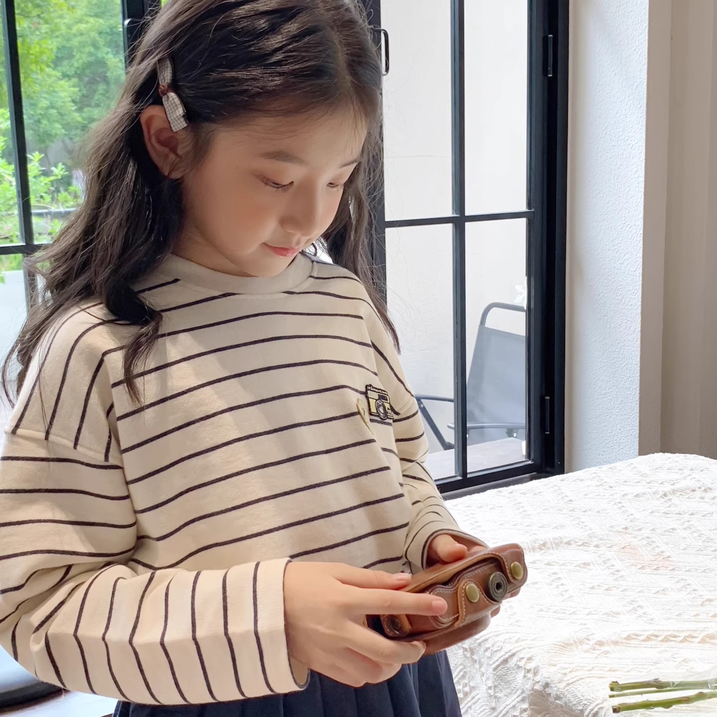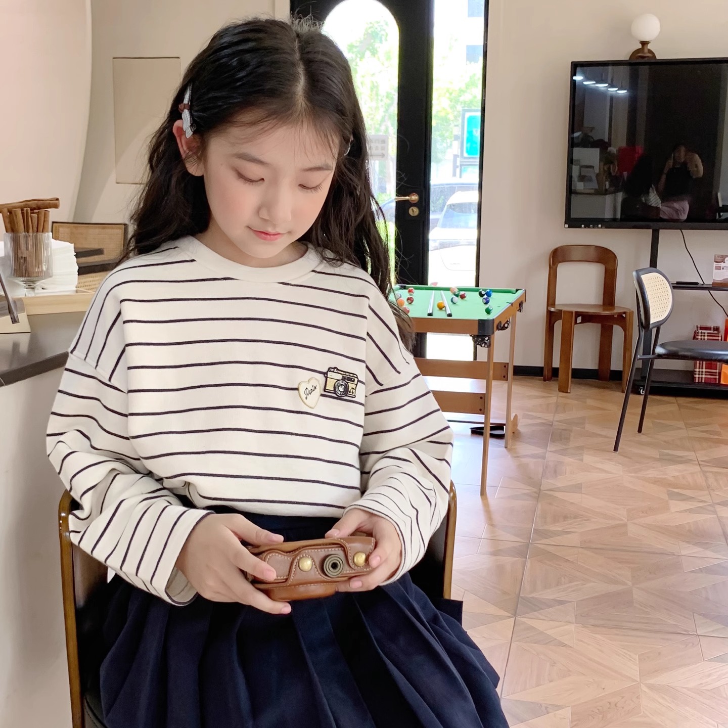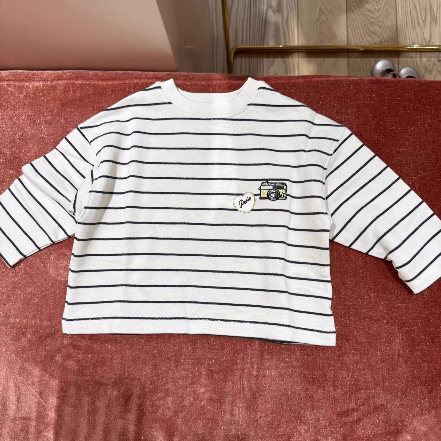 法式女童黑白条纹卫衣 儿童小毛圈秋季圆领卫衣 25秋冬新款
