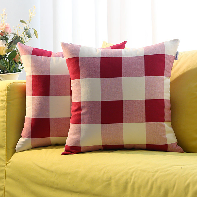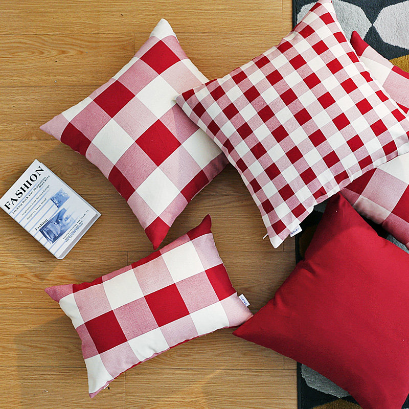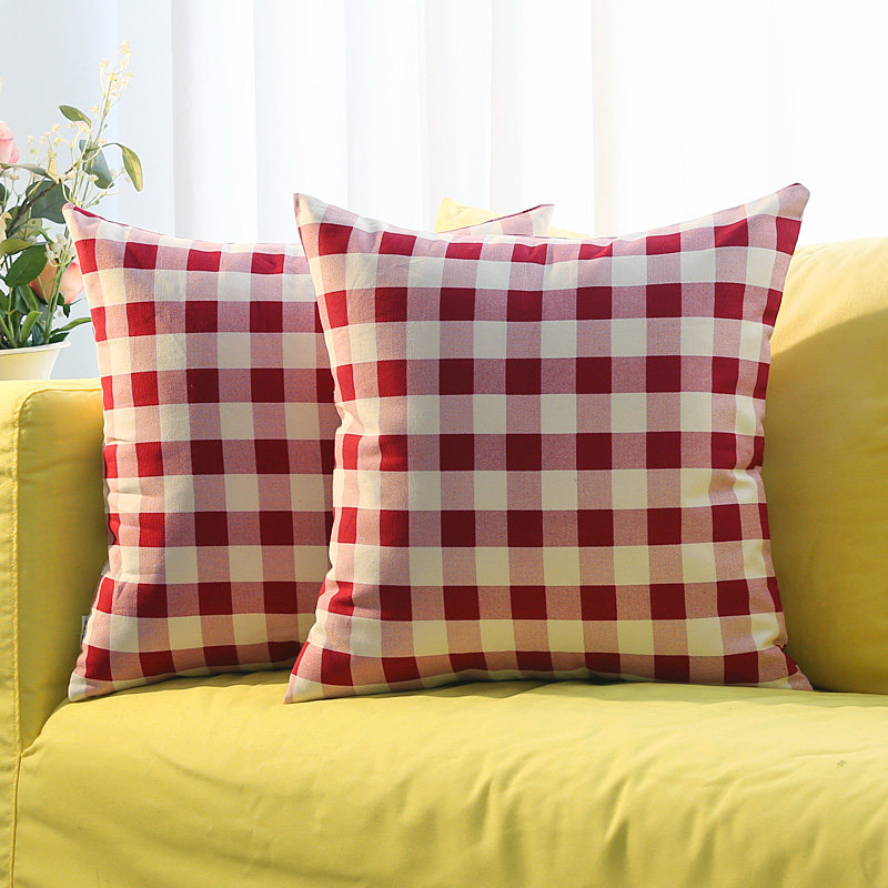酒红色纯色格子抱枕套 含芯 沙发靠垫汽车靠枕纯棉腰枕加厚热销款