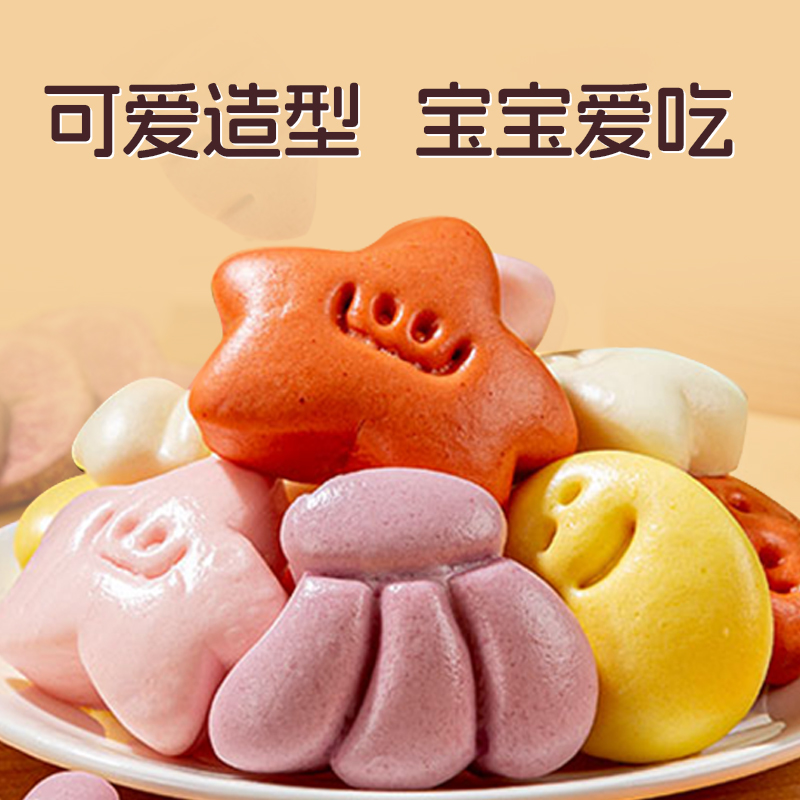 果蔬卡通宝宝馒头无添加儿童营养速食早餐半成品牛乳馒头