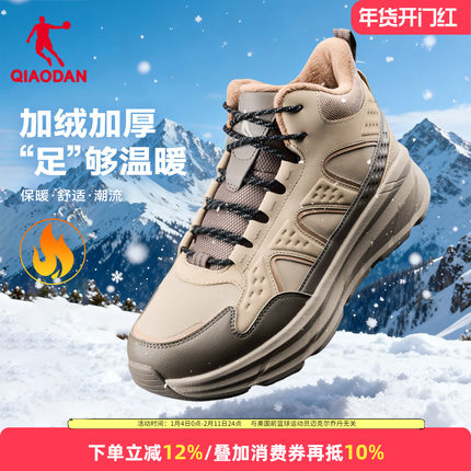 乔丹冬季加绒男鞋高帮棉鞋雪地鞋户外皮面跑步鞋男士防滑运动鞋男
